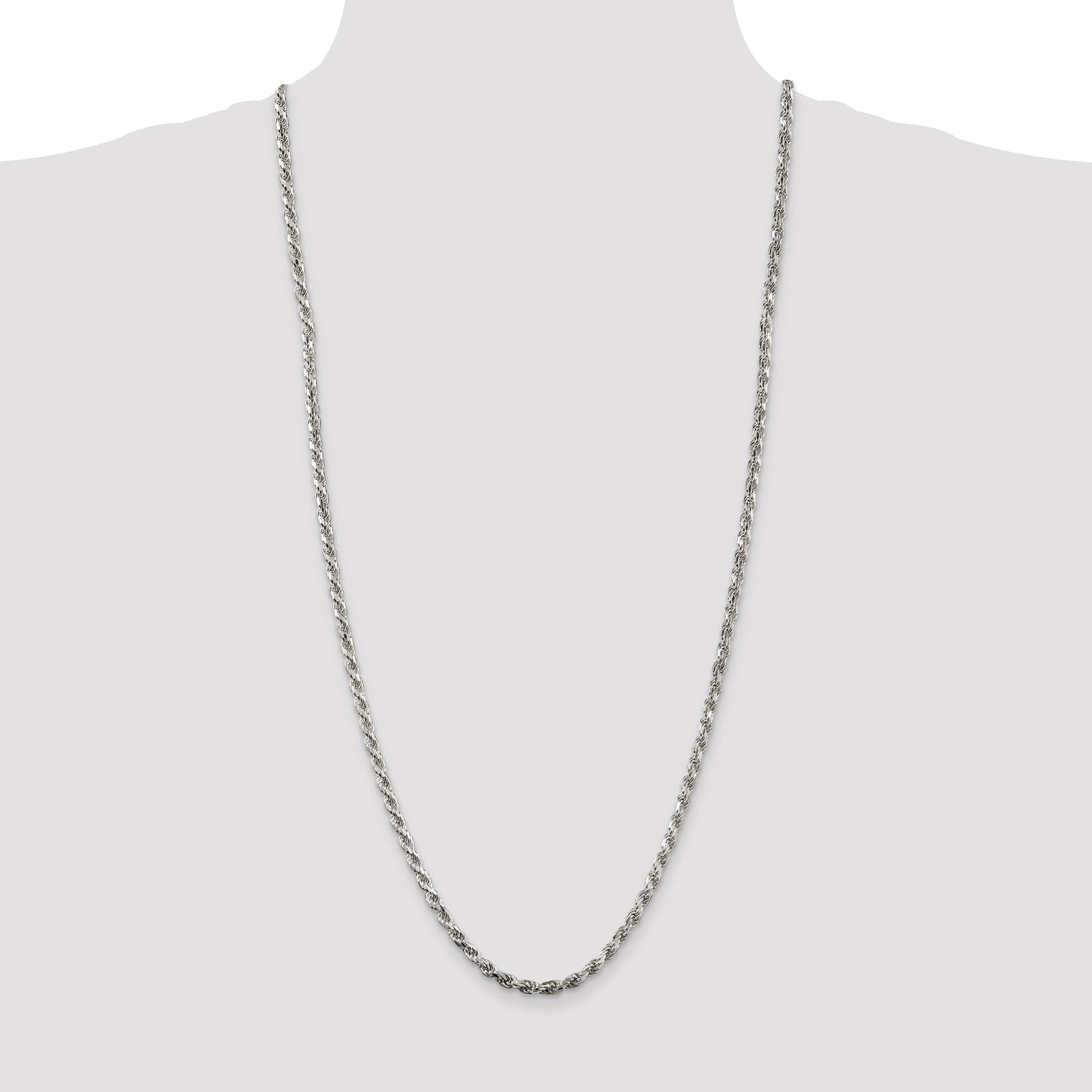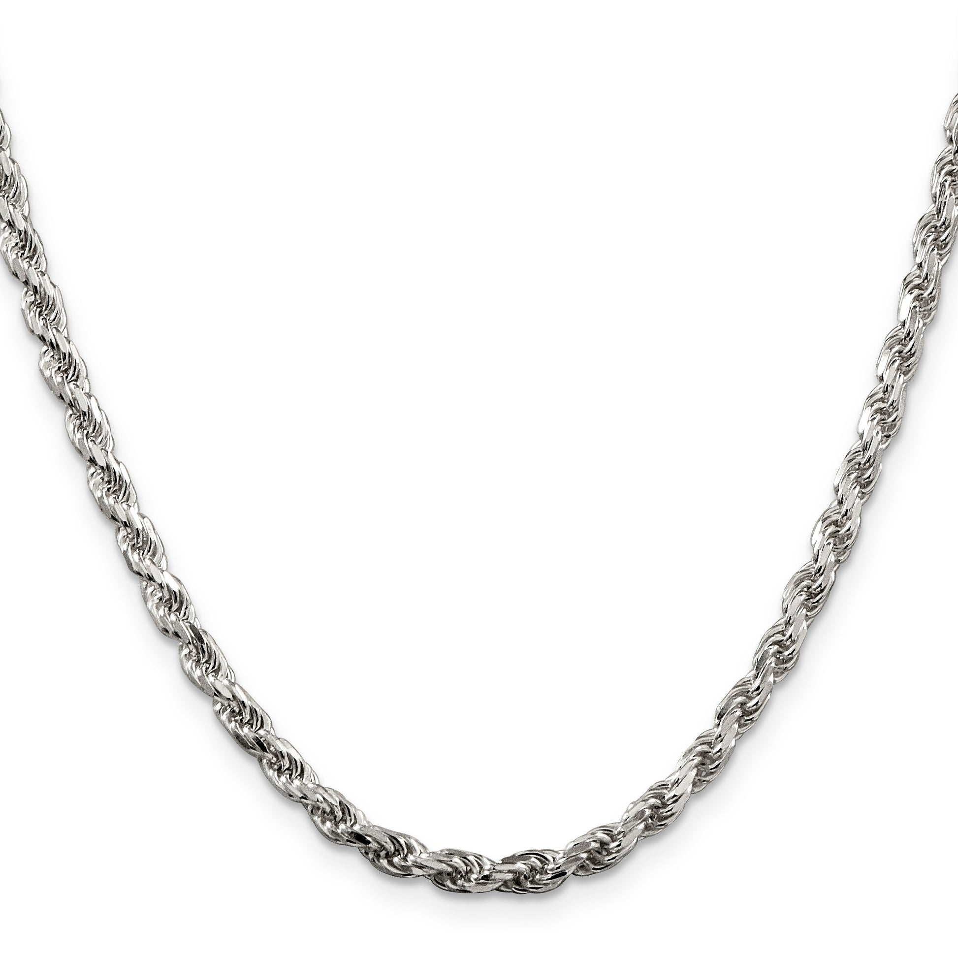 The 30 Inch Sterling Silver 3.75mm Diamond-Cut Rope Chain is an elegant addition to any jewelry collection. Made from high-quality 925 sterling silver and finished with a polished shine, the chain exudes timeless style while offering durability. The diamond-cut texture adds a brilliant shimmer, ensuring it catches the light beautifully. An anti-tarnish coating keeps it looking pristine, while the solid cast construction speaks to its longevity. With a versatile 30-inch length and a strong lobster clasp, this chain is perfect for layering or wearing solo. Choose the 30 Inch Sterling Silver 3.75mm Diamond-Cut Rope Chain for a touch of classic sophistication.