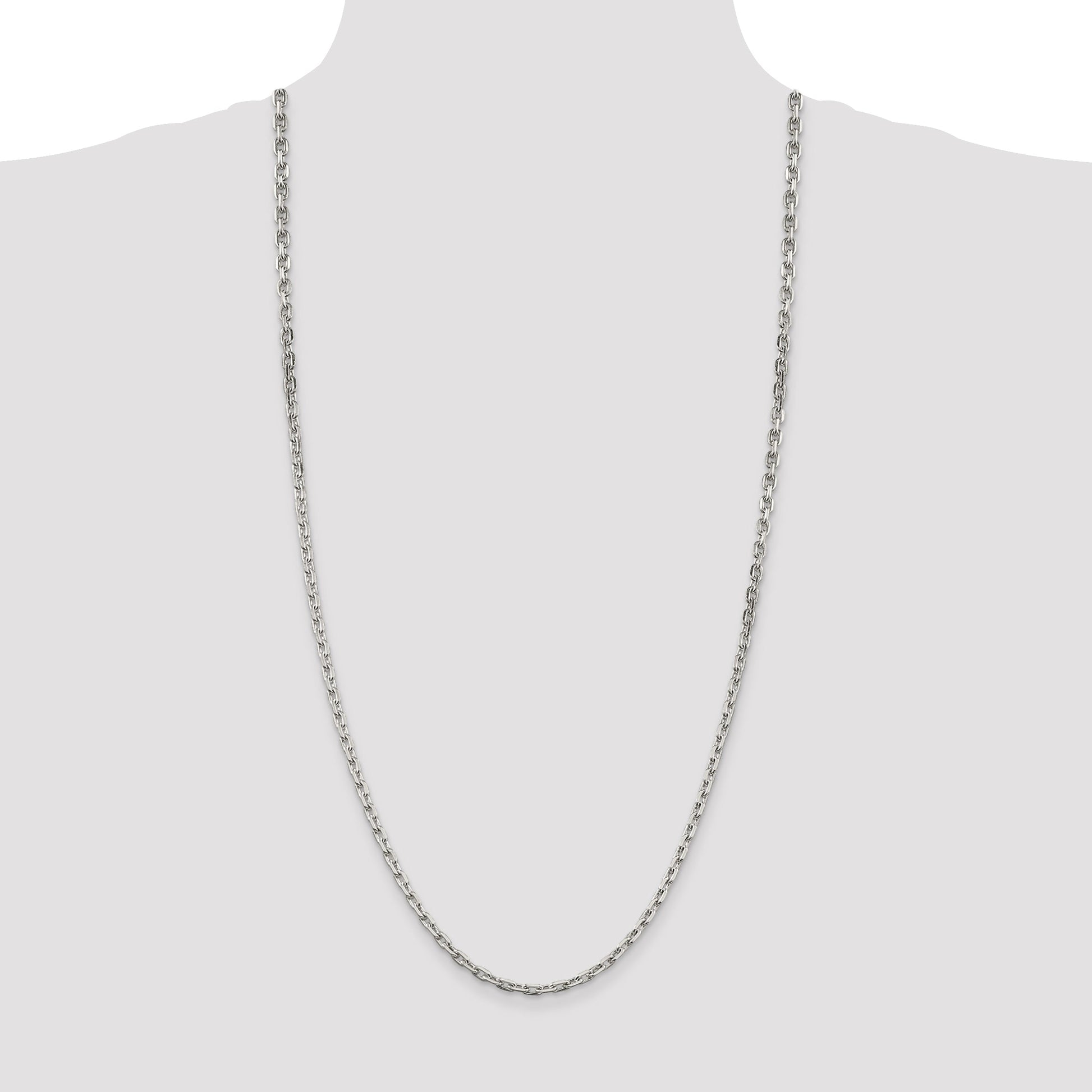 Introducing the 30 Inch Sterling Silver 3.95mm Beveled Oval Cable Chain, a stunning piece for your jewelry collection. Crafted from 925 sterling silver, this chain glistens with a polished finish, adding elegance to any outfit. Its 30-inch length makes it the perfect accessory for layering with other pieces or wearing solo for a minimalist look. The lobster clasp ensures secure wear, while the solid build assures durability. The beveled edge and open link design offer a distinctive and stylish touch. This women's chain is chic and versatile, making the 30 Inch Sterling Silver Beveled Oval Cable Chain an essential addition to your wardrobe.