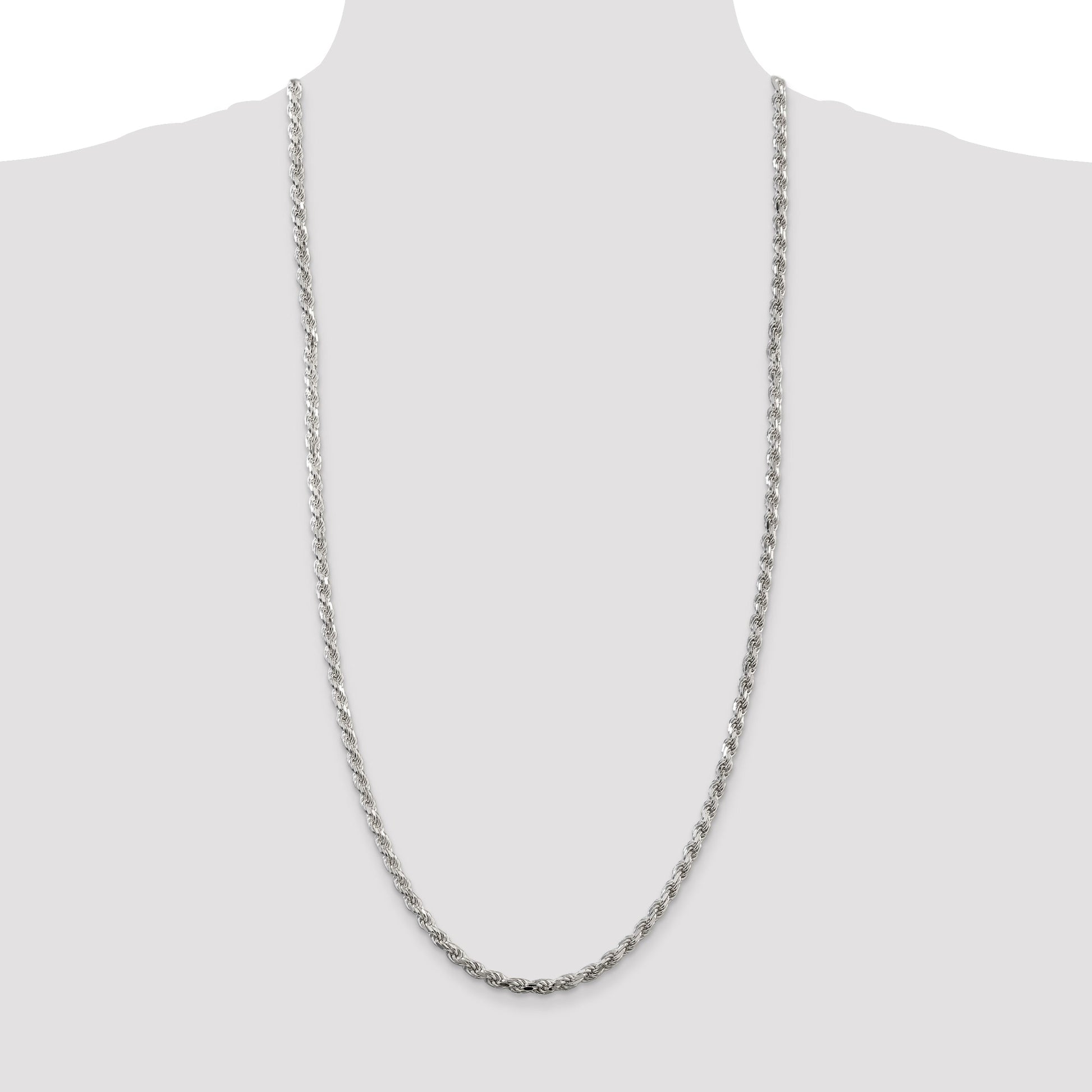 The 30 Inch Sterling Silver 4.25mm Diamond-Cut Rope Chain is a perfect piece for any jewelry lover. Made from 925 sterling silver, this polished chain adds a touch of elegance to your attire. Its stunning 4.25mm width and diamond-cut texture give it that unique sparkle. The 30-inch length provides a versatile wearing style, whether it's going solo or paired with your favorite pendant. Its anti-tarnish coating ensures long-lasting shine. Secure it with the durable lobster clasp and showcase its classy rope design. This Sterling Silver Diamond-Cut Rope Chain redefines simplicity with style.