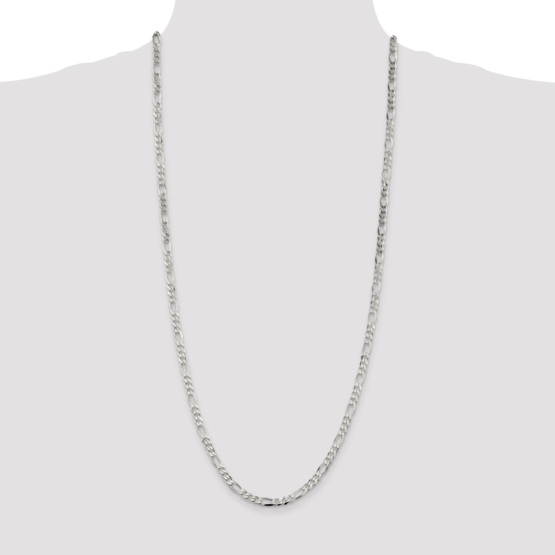 The 30 Inch Sterling Silver Figaro Chain exudes timeless style and luxury. Crafted with 925 sterling silver, this polished piece captures the essence of elegance for the modern woman. Its 4.5mm width and 30-inch length form a beautiful accessory that complements any attire. The Figaro style embraces classic charm, and thanks to its anti-tarnish coating, it retains its shine for years. A reliable lobster clasp joins the chain with secure grace. This stunning sterling silver Figaro chain is a perfect blend of durability and sophistication.