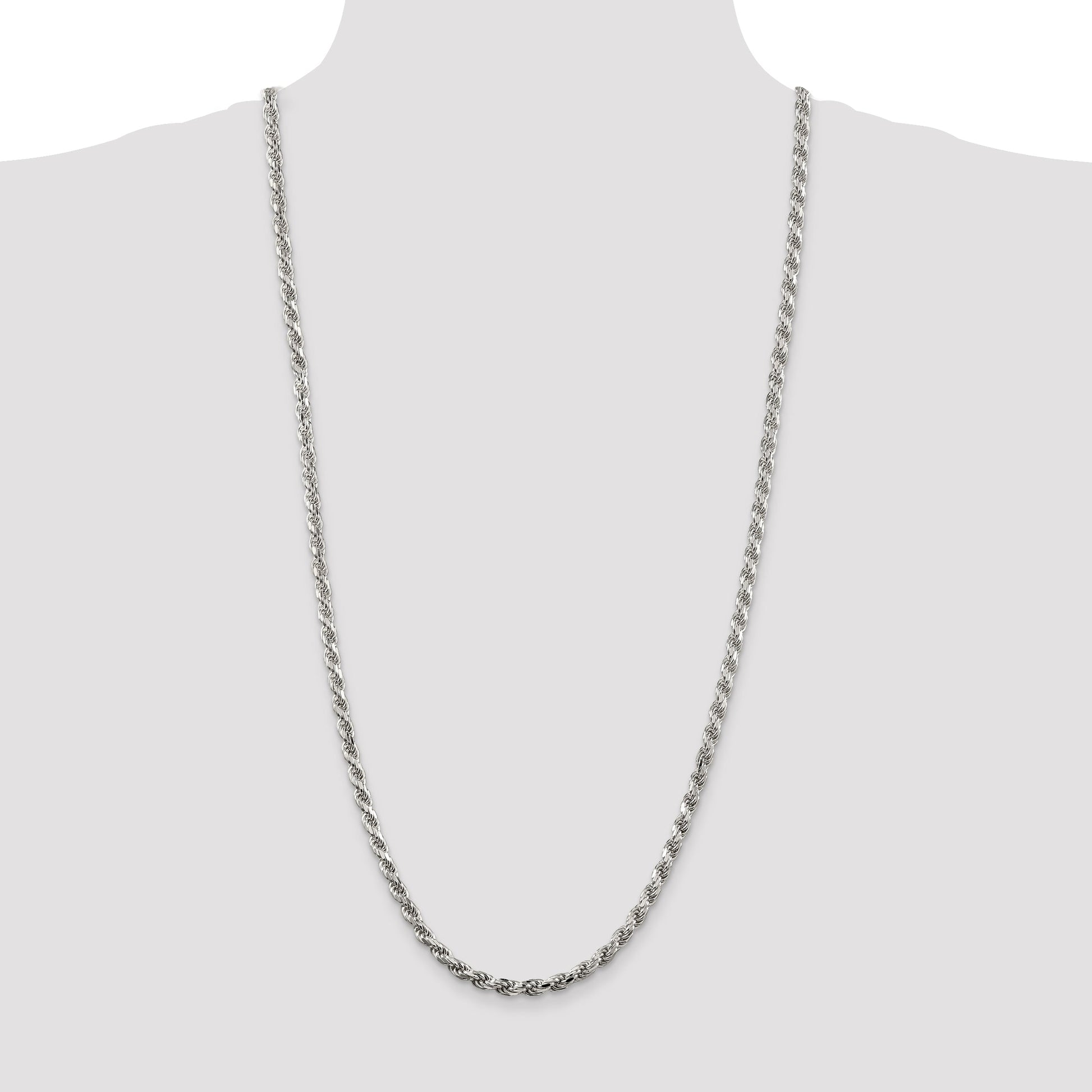 Introducing the 30 Inch Sterling Silver 4.6mm Diamond-Cut Rope Chain, an eye-catching piece for your collection. Crafted from high-quality 925 sterling silver, this necklace brings a refined shine with its polished diamond-cut texture. Its 30-inch length hangs elegantly, making it ideal for layering or wearing alone. The rope design showcases a solid build, ensuring durability. It's fitted with a secure lobster clasp for peace of mind. An anti-tarnish coating helps it maintain its pristine look. The 30 Inch Sterling Silver 4.6mm Diamond-Cut Rope Chain is a must-have for any jewelry lover who appreciates timeless style.