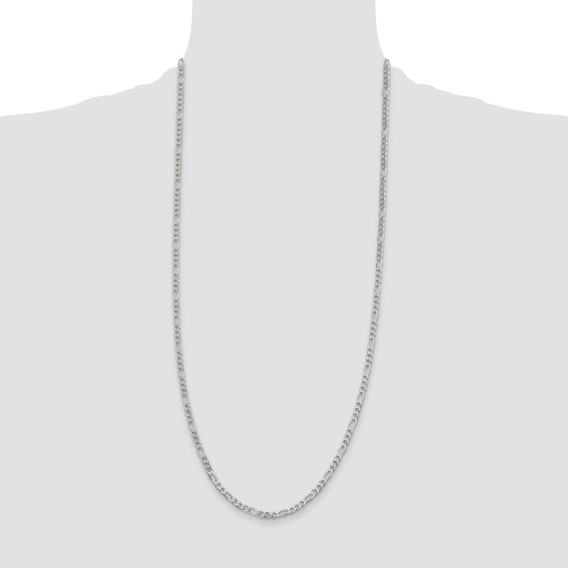 The 30 Inch Sterling Silver 4mm Pave Flat Figaro Chain is the epitome of elegance and style. Crafted with 925 sterling silver, this necklace flaunts a polished finish that catches light beautifully. The Figaro design, known for its distinct pattern, adds a touch of class to any outfit. With a sturdy 4mm width and a flat profile, this chain rests comfortably on the neck. The lobster clasp ensures secure wear, while the anti-tarnish coating keeps it sparkling. Perfect for any occasion, the 30 Inch Sterling Silver 4mm Pave Flat Figaro Chain is a wonderful addition to any jewelry collection.