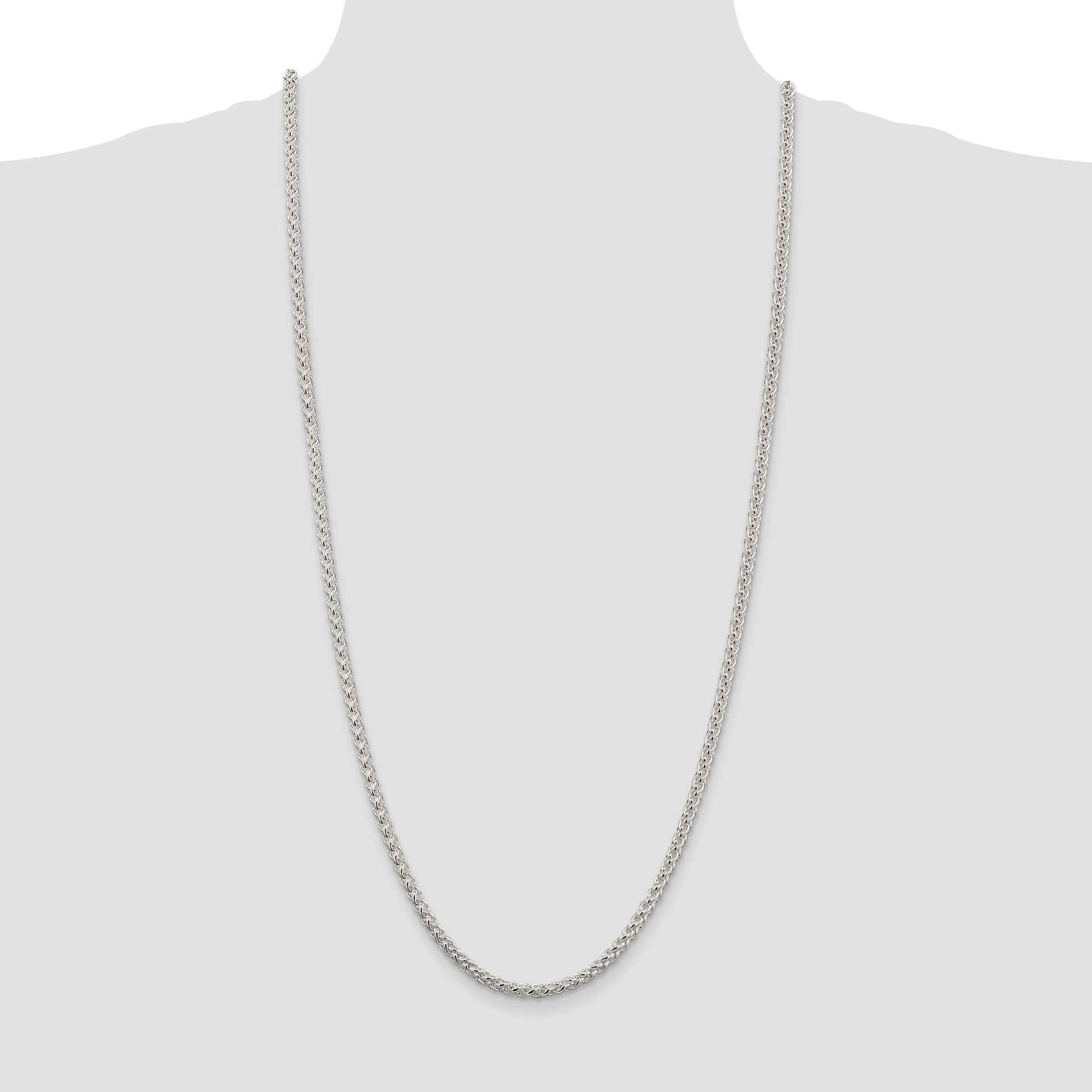 The 30-Inch Sterling Silver 4mm Round Spiga Chain is a must-have for any jewelry collection. Crafted from premium 925 sterling silver, this necklace boasts a polished finish that shines bright. Its anti-tarnish coating ensures lasting beauty. Measuring 30 inches, the chain is ideal for layering or making a statement. The 4mm width offers a distinctive yet elegant look, while the round Spiga woven design adds a touch of luxury. Equipped with a secure lobster clasp, this chain is easy to wear. The 30-Inch Sterling Silver 4mm Round Spiga Chain makes a chic gift or personal treasure.