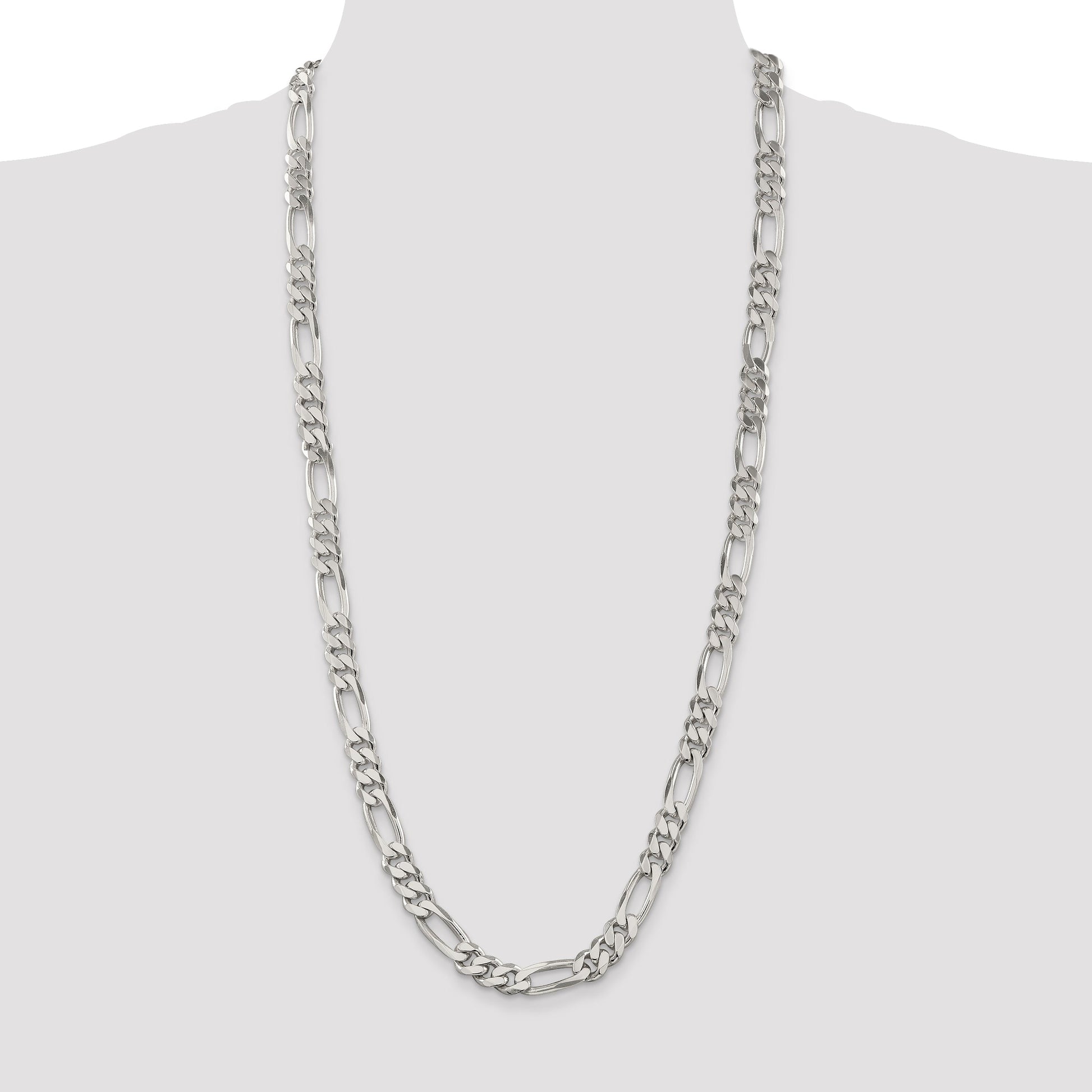 Elevate your style with the 30 Inch Sterling Silver 9mm Figaro Chain. Crafted from 925 sterling silver, this necklace shines with a polished finish and robust anti-tarnish coating, ensuring long-lasting luster. The Figaro design, featuring alternating short and long links, offers a classic yet striking look. At 30 inches, this chain rests comfortably around your neck, providing a perfect fit for any outfit. Featuring a strong lobster clasp and solid construction, it promises both durability and easy wear. The 30 Inch Sterling Silver 9mm Figaro Chain is the epitome of elegance for men's jewelry.