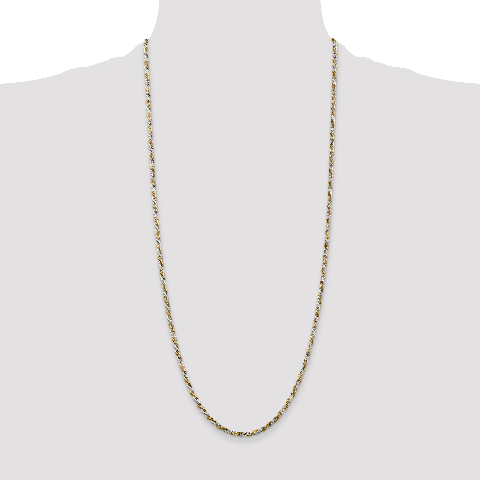 The 30 Inch Sterling Silver and Vermeil Diamond-Cut Rope Chain is a stunning blend of elegance and style. This necklace, made from 925 sterling silver, features a polished finish with a gold-tone vermeil plating. Its diamond-cut texture adds a touch of sparkle, perfect for drawing attention. With a secure lobster clasp, this chain measures 2.5mm in width, making it ideal for everyday wear or special occasions. Each 30-inch chain is beautifully machine-crafted to enhance durability. The 30 Inch Sterling Silver and Vermeil Rope Chain makes a striking addition to any jewelry collection.