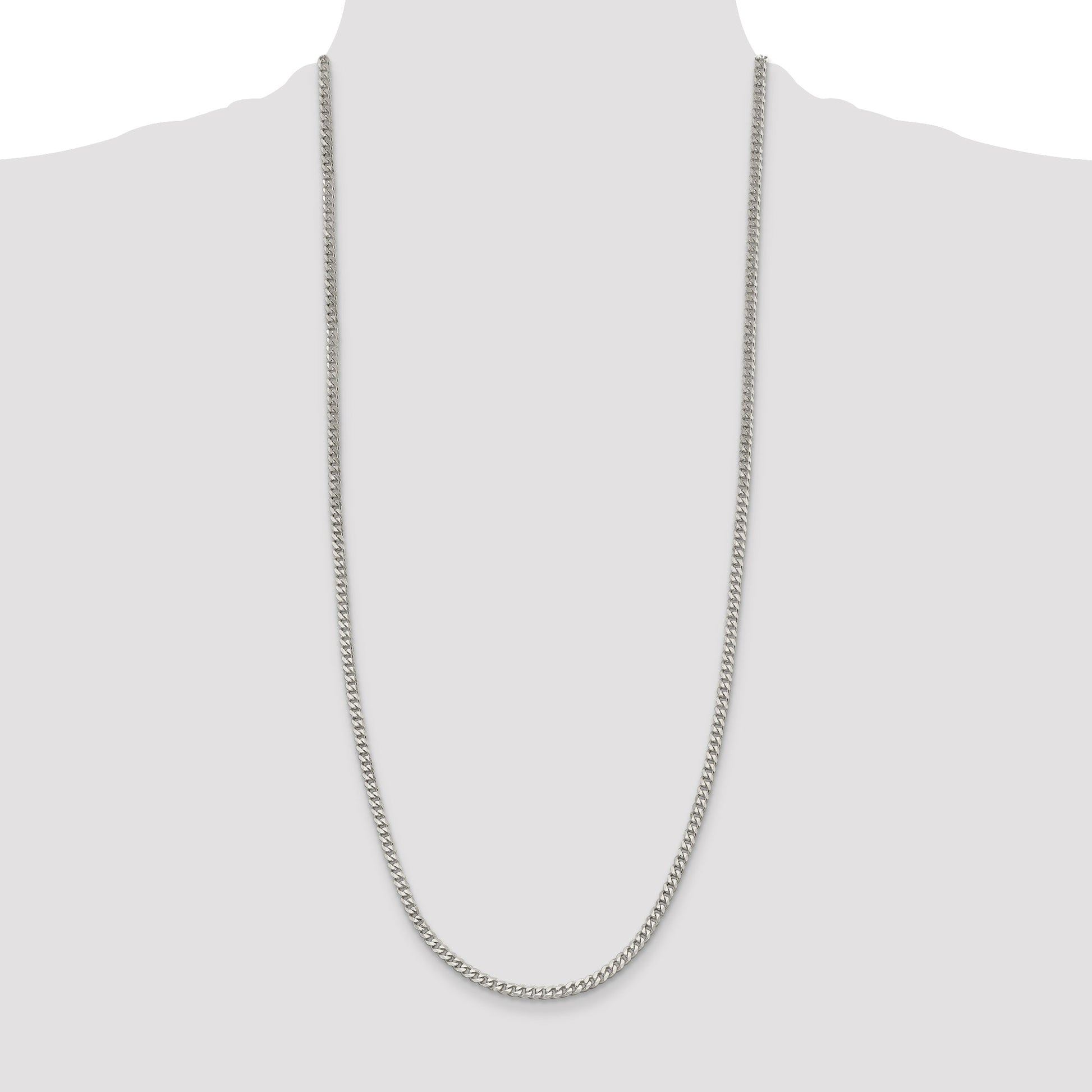 The 30 Inch Sterling Silver Rhodium-Plated 3.5mm Curb Chain adds a special touch of elegance to any outfit. Crafted from 925 sterling silver, the polished finish shines bright with a stunning silver tone. The 3.5mm curb chain is machine-made, ensuring consistency and durability. Featuring a lobster clasp, this chain embodies solid craftsmanship while maintaining sleek style. Its 30-inch length effortlessly complements various necklines. Ideal for women's jewelry collections, this rhodium-plated chain promises a lasting shine and elegance. The 30 Inch Sterling Silver Rhodium-Plated 3.5mm Curb Chain brings timeless sophistication to your accessory lineup.