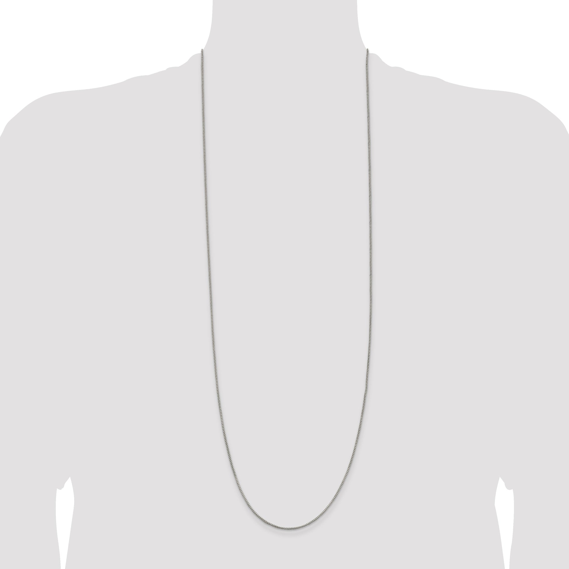 Elevate your style with our 36-Inch Sterling Silver 1.25mm Round Box Chain. This necklace showcases the timeless beauty of sterling silver, polished to perfection. The box chain design strikes a balance between strength and elegance, with a fine width of 1.25mm. Its 36-inch length offers versatile style and layering options. Equipped with a reliable spring ring clasp, this chain ensures a secure fit. Featuring anti-tarnish protection, the necklace maintains its gleam. Revel in the luxury and durability of this solid casted piece. Add the 36 Inch Sterling Silver 1.25mm Round Box Chain to your collection today.