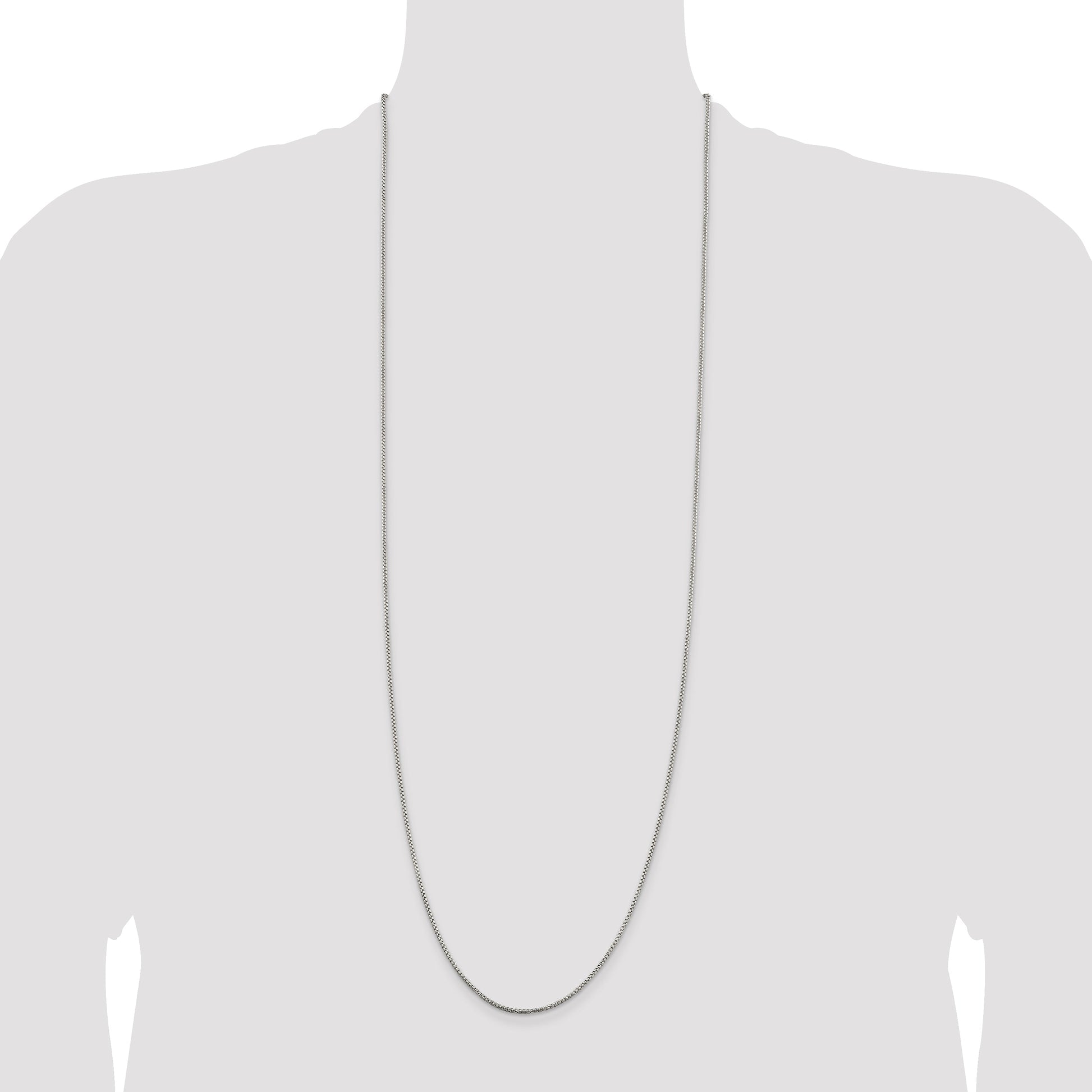 Meet the 36 Inch Sterling Silver 1.5mm Round Box Chain, an elegant piece for every jewelry lover. Made from high-quality 925 sterling silver, it promises lasting shine thanks to its polished finish and anti-tarnish coating. With a generous 36-inch length, this chain offers versatility in styling. The 1.5mm width makes it perfect for adding a pendant or wearing solo for a subtle sparkle. A sturdy lobster clasp ensures security. This classic chain effortlessly complements any outfit, making the 36 Inch Sterling Silver 1.5mm Round Box Chain an essential addition to your jewelry collection.