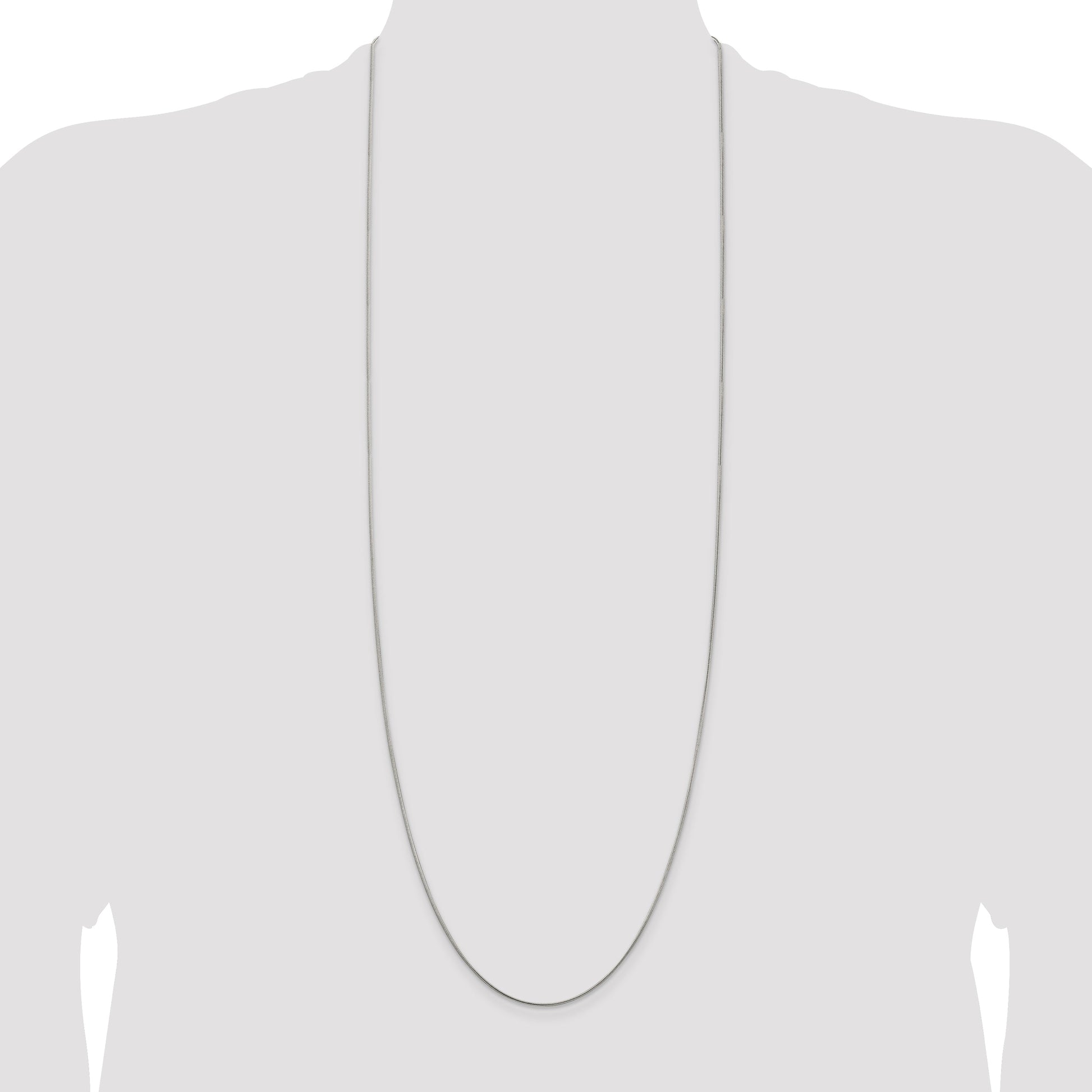 The 36 Inch Sterling Silver 1mm Snake Chain is a sleek addition to any jewelry collection. Crafted from 925 sterling silver, this polished chain showcases a luxurious white hue. Its slim 1mm width provides a delicate yet durable design, perfect for daily elegance. The chain's 36-inch length offers versatile styling options, whether worn solo or with a pendant. The solid, round profile presents a smooth, seamless look, enhanced by a sturdy lobster clasp for secure wear. Embrace timeless beauty with the 36 Inch Sterling Silver 1mm Snake Chain and elevate your style.