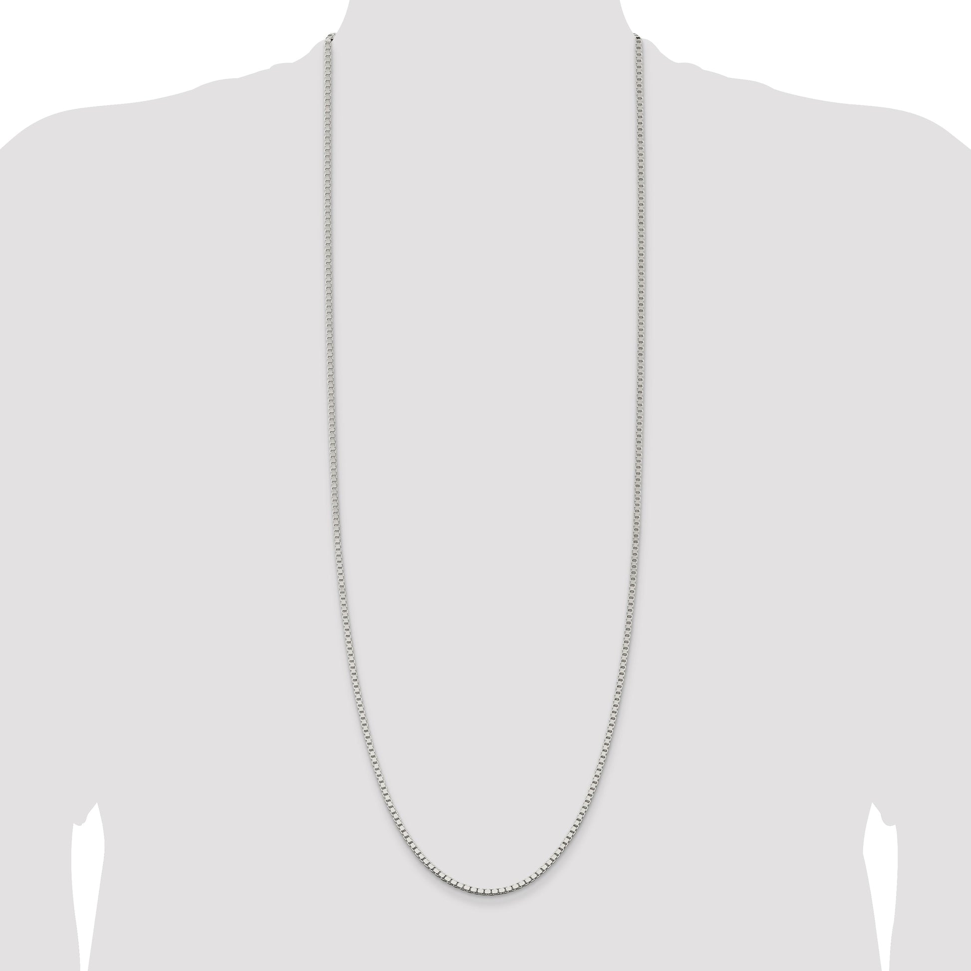 The 36 Inch Sterling Silver 2.5mm Box Chain is a classic addition to your jewelry collection. Made from 925 sterling silver, this box chain shines with a polished finish. Its 36-inch length offers versatility for layering or standalone elegance. The 2.5mm width provides a subtle yet noticeable presence around the neck. Equipped with a durable lobster clasp, it secures with ease. The anti-tarnish coating ensures lasting shine and protection from wear. This machine-made masterpiece in white sterling silver is suited for every woman who appreciates timeless, versatile necklaces. Revel in the elegance of the 36 Inch Sterling Silver 2.5mm Box Chain.
