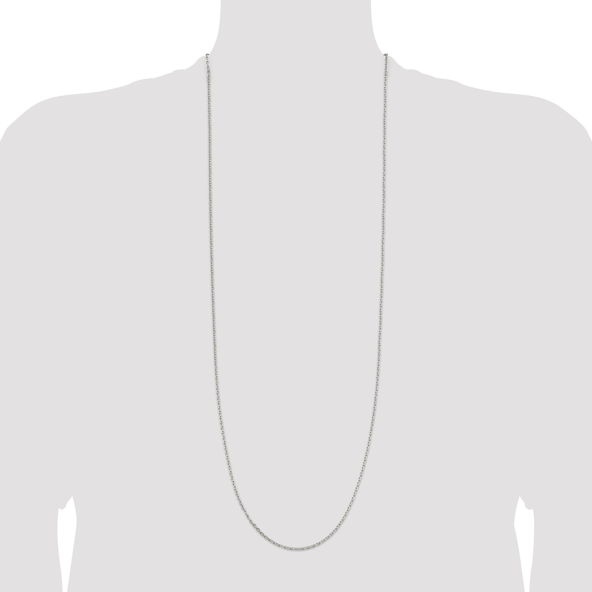 Get a timeless look with the 36 Inch Sterling Silver 2mm Beveled Oval Cable Chain. Made with 925 sterling silver, this polished beauty shines with every move. Its 36-inch length makes it versatile for any outfit, from casual to elegant. A 2mm width offers a delicate yet sturdy feel. The open link, beveled edge design adds a touch of sophistication. The lobster clasp ensures secure wear all day. It's a perfect jewelry piece for women who appreciate quality and style. Elevate your collection with this Sterling Silver Beveled Cable Chain today.