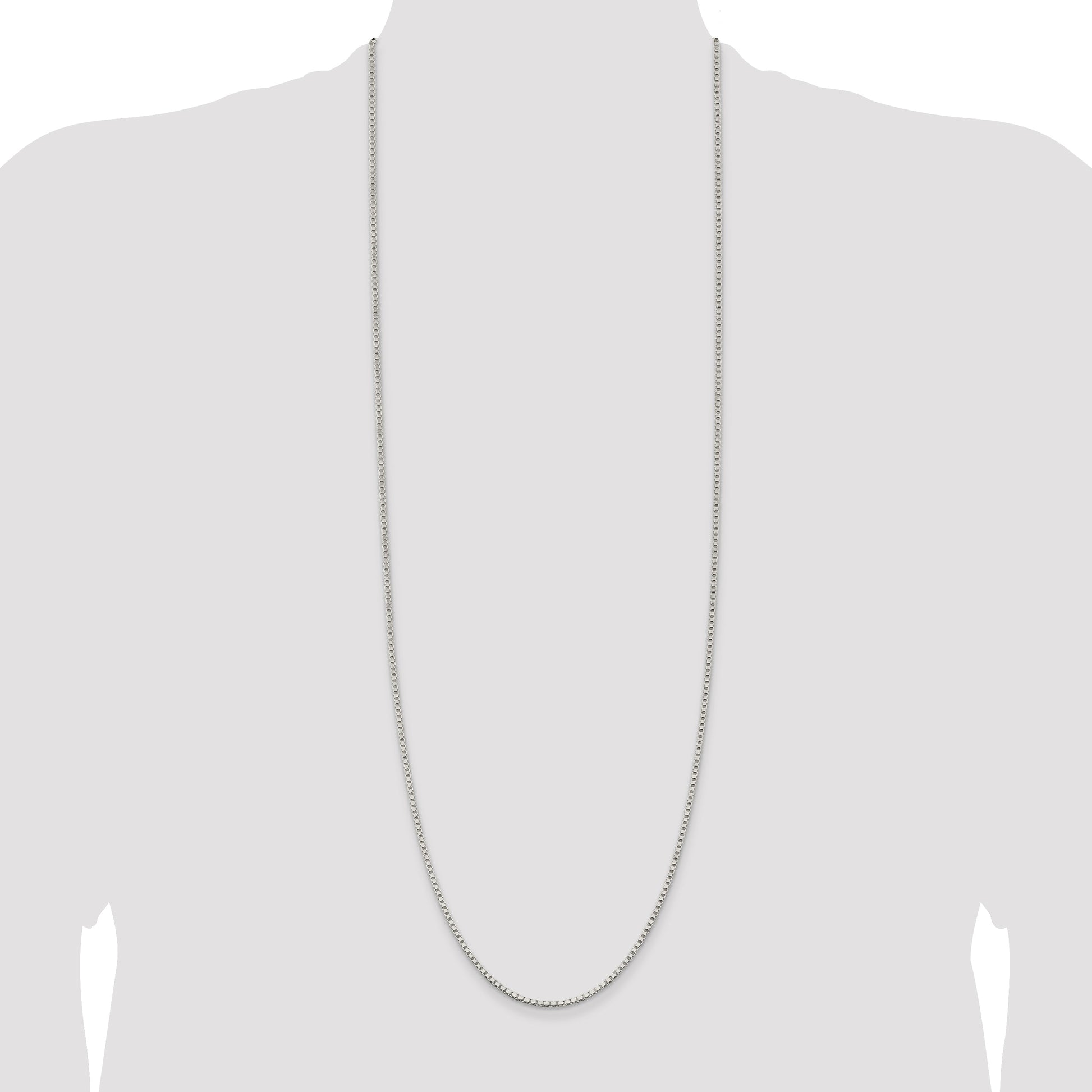 The 36 Inch Sterling Silver 2mm Box Chain is a stunning addition to any jewelry collection. Carefully crafted from pure 925 sterling silver, it offers a polished and sleek finish. This 36-inch, machine-made necklace brings a classic and sophisticated feel. The fine 2mm width gives it a delicate yet sturdy look, perfect for everyday wear. Its lobster clasp secures it comfortably around your neck, ensuring ease of wear while maintaining elegance. An anti-tarnish coating protects its pure white color, promising long-lasting shine. Elevate your style with this timeless 36 Inch Sterling Silver 2mm Box Chain.