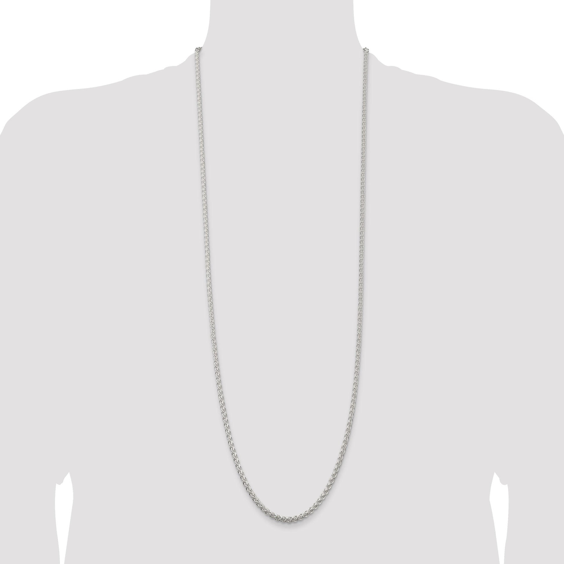 Discover the elegance of the 36 Inch Sterling Silver 3mm Round Spiga Chain. Crafted from 925 sterling silver, this polished piece exudes timeless sophistication. The Spiga, or wheat chain, blends durability with style, boasting a solid construction and anti-tarnish coating to maintain its pristine appearance. Measuring 36 inches, this versatile necklace drapes gracefully, perfect for any occasion. The lobster clasp ensures a secure fit, while the 3mm width adds subtle shine to your ensemble. Embrace the understated beauty of this necklace, a staple piece for every jewelry collection.