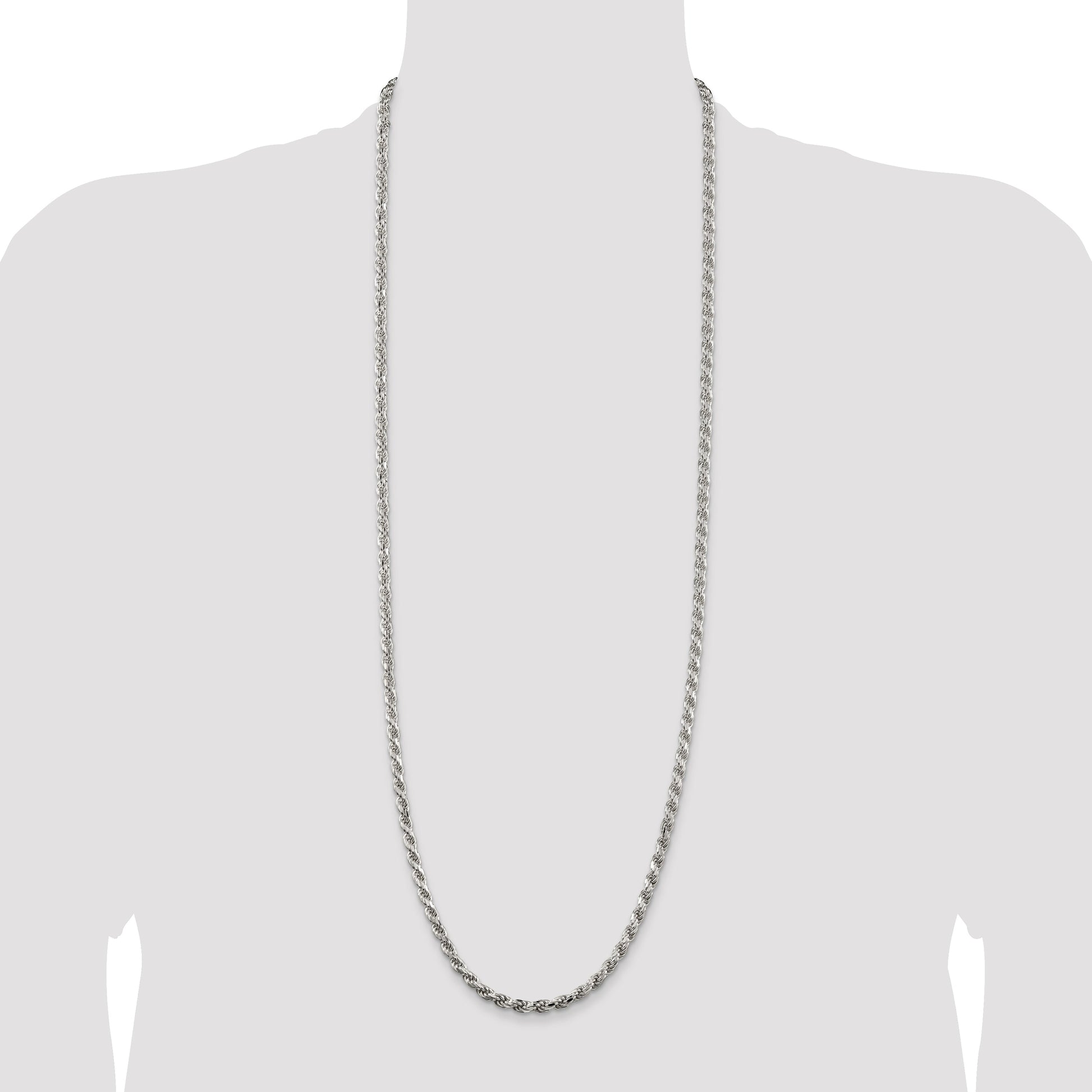 The 36 Inch Sterling Silver 4.6mm Diamond-Cut Rope Chain redefines elegance. Crafted from 925 sterling silver, this polished necklace showcases a brilliant diamond-cut texture. Its 36-inch length and 4.75 mm width make it a standout piece, perfect for wearers looking to make a statement. The solid chain features a robust lobster clasp, ensuring a secure and comfortable fit. To top it off, an anti-tarnish coating keeps the brilliance lasting. Ideal as a special gift or a personal treasure, the 36 Inch Sterling Silver Rope Chain is a timeless accessory for any jewelry lover.