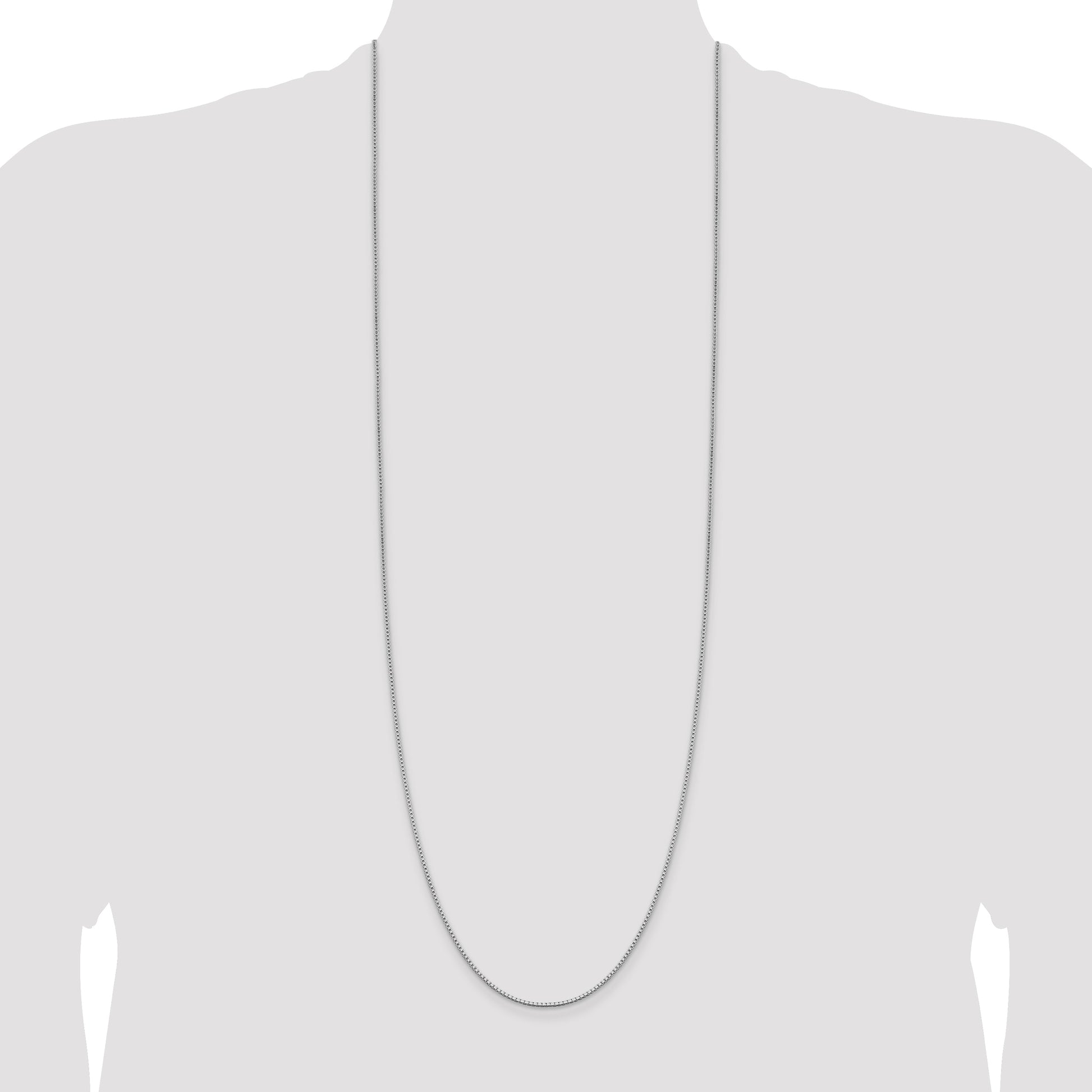 Elevate your ensemble with the 36 Inch Sterling Silver Rhodium-Plated 1.4mm Box Chain. Crafted from 925 sterling silver, it boasts a polished finish and exudes elegance. The sleek 1.4mm width offers a streamlined look, while the 36-inch length provides versatility in styling. This necklace features a durable box chain design and a secure lobster clasp for ease. Rhodium plating enhances its shine, ensuring it remains radiant. Ideal for layering or as a standalone statement piece, the 36 Inch Sterling Silver Rhodium-Plated 1.4mm Box Chain is a must-have for any jewelry lover.