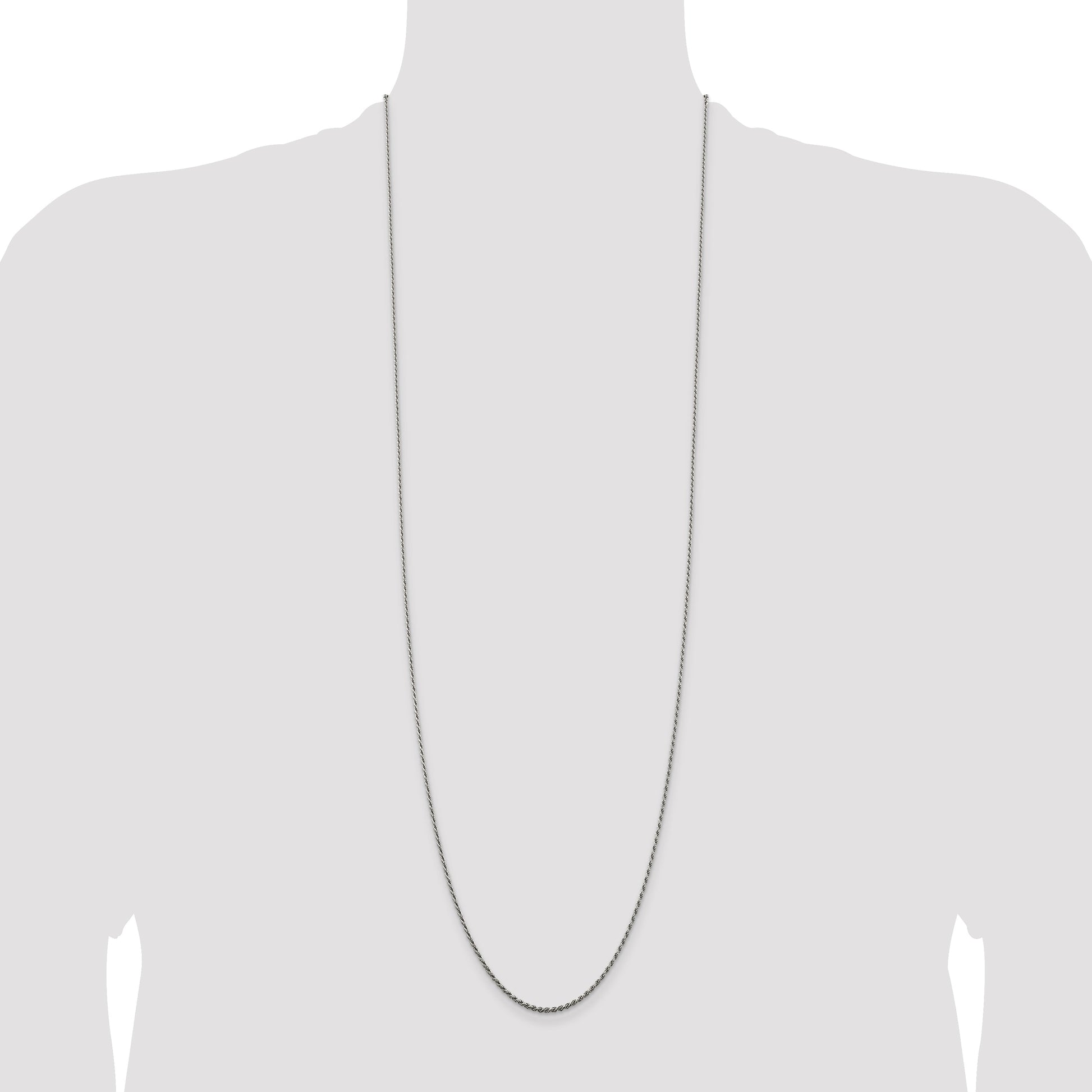 The 36 Inch Sterling Silver Rhodium-Plated 1.5mm Diamond-Cut Rope Chain is a stunning work of art. Crafted from high-quality 925 sterling silver, this chain features a polished finish and boasts a length of 36 inches. Its diamond-cut texture adds a sparkling touch, while the rhodium plating ensures a brilliant silver tone that catches the eye. The chain's 1.5mm width and solid construction make it durable, and the spring ring clasp offers secure wearability. Perfect for women seeking timeless elegance, this rope chain can complement any outfit. Embrace sophistication with the 36 Inch Sterling Silver Rhodium-Plated Rope Chain.
