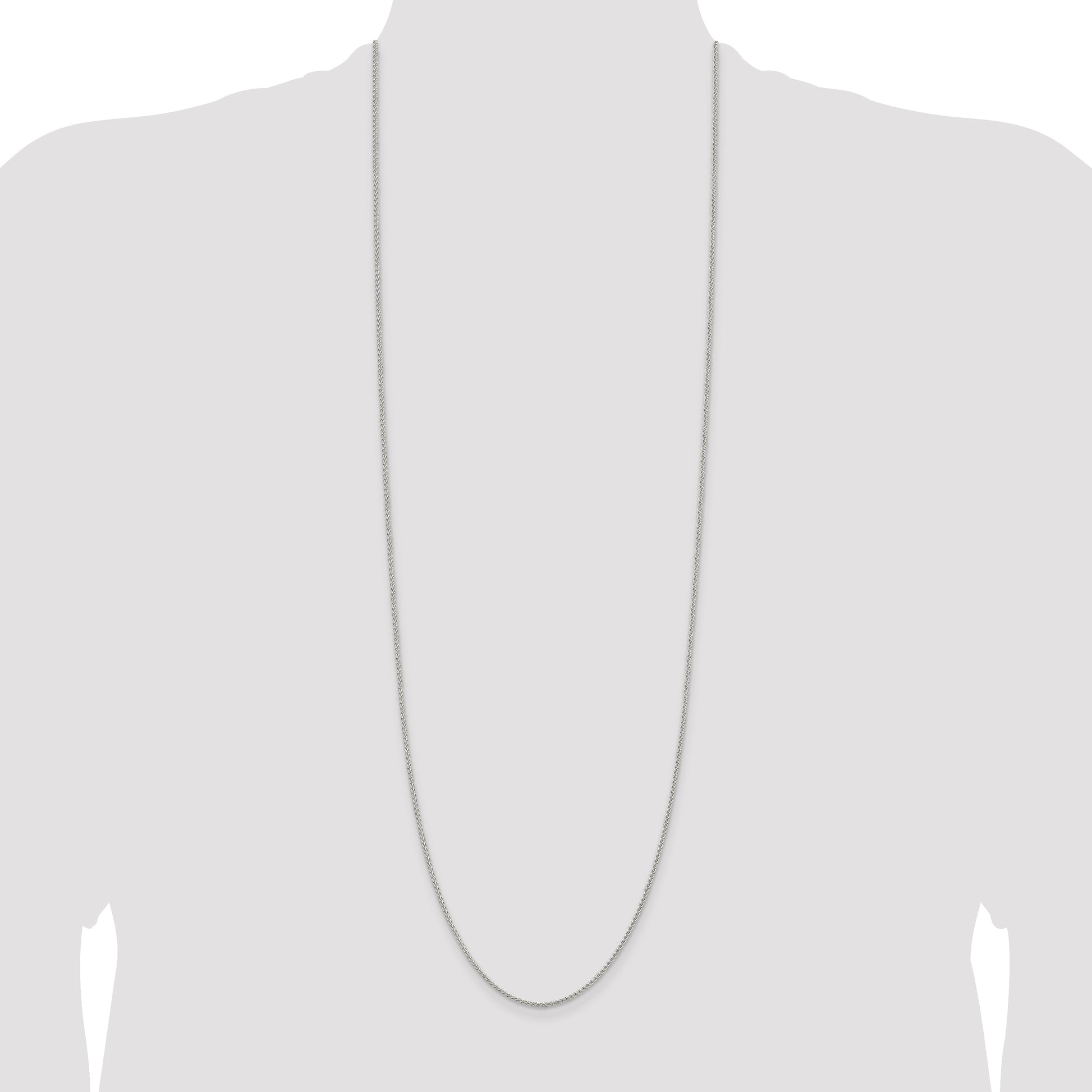 The 36 Inch Sterling Silver Rhodium-Plated 1.5mm Round Spiga Chain offers elegant style with lasting quality. Made from 925 sterling silver, it boasts a polished finish that enhances its shine. At 36 inches in length, this Spiga chain offers versatility for layering or a standalone statement piece. The 1.5mm round design creates a delicate yet durable look suitable for any occasion. A secure lobster clasp ensures ease of wear. The rhodium plating gives a stunning silver tone that resists tarnish, keeping the 36 Inch Sterling Silver Rhodium-Plated 1.5mm Round Spiga Chain looking brilliant.