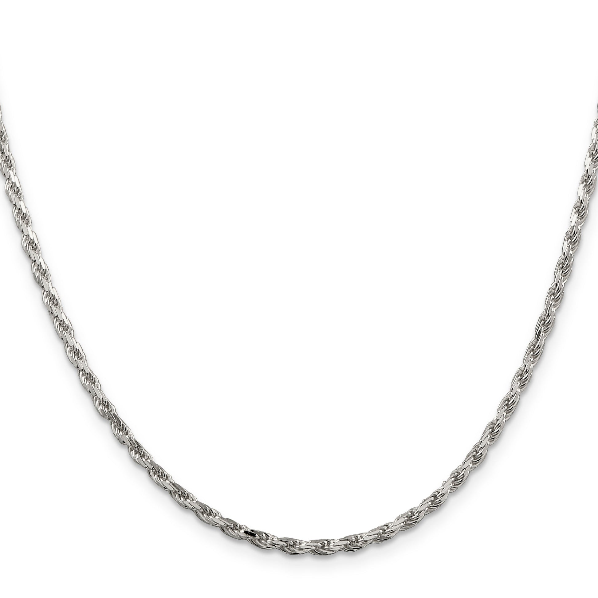 Discover elegance with the 36 Inch Sterling Silver Rhodium-Plated 2.5mm Diamond-Cut Rope Chain. This exquisite piece showcases the timeless beauty of sterling silver enhanced by a rhodium plating, giving it a brilliant white hue. The 2.5mm diameter offers a delicate yet distinct look, highlighted by a diamond-cut texture that catches light with every movement. Designed for women who appreciate refined style, this necklace features a durable lobster clasp for secure wear. Embrace its versatility; wear it solo or layer with other chains for a chic statement. The 36-inch sterling silver rhodium-plated diamond-cut chain makes every outfit shine.