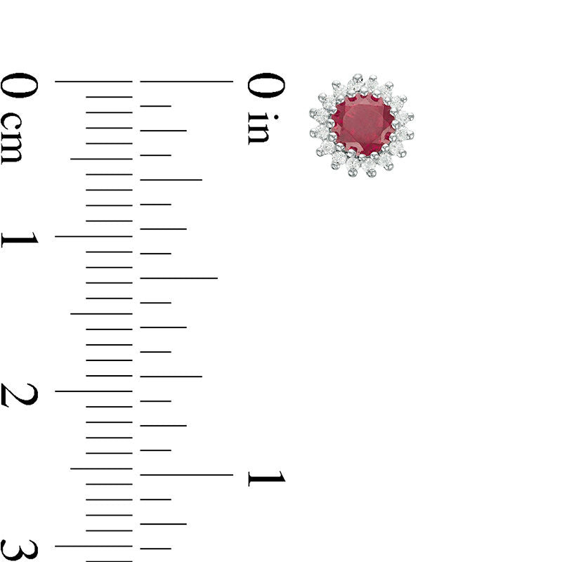 4.0mm Lab-Created Ruby and 0.13 CT. T.W. Diamond Sunburst Stud Earrings in 10K White Gold
