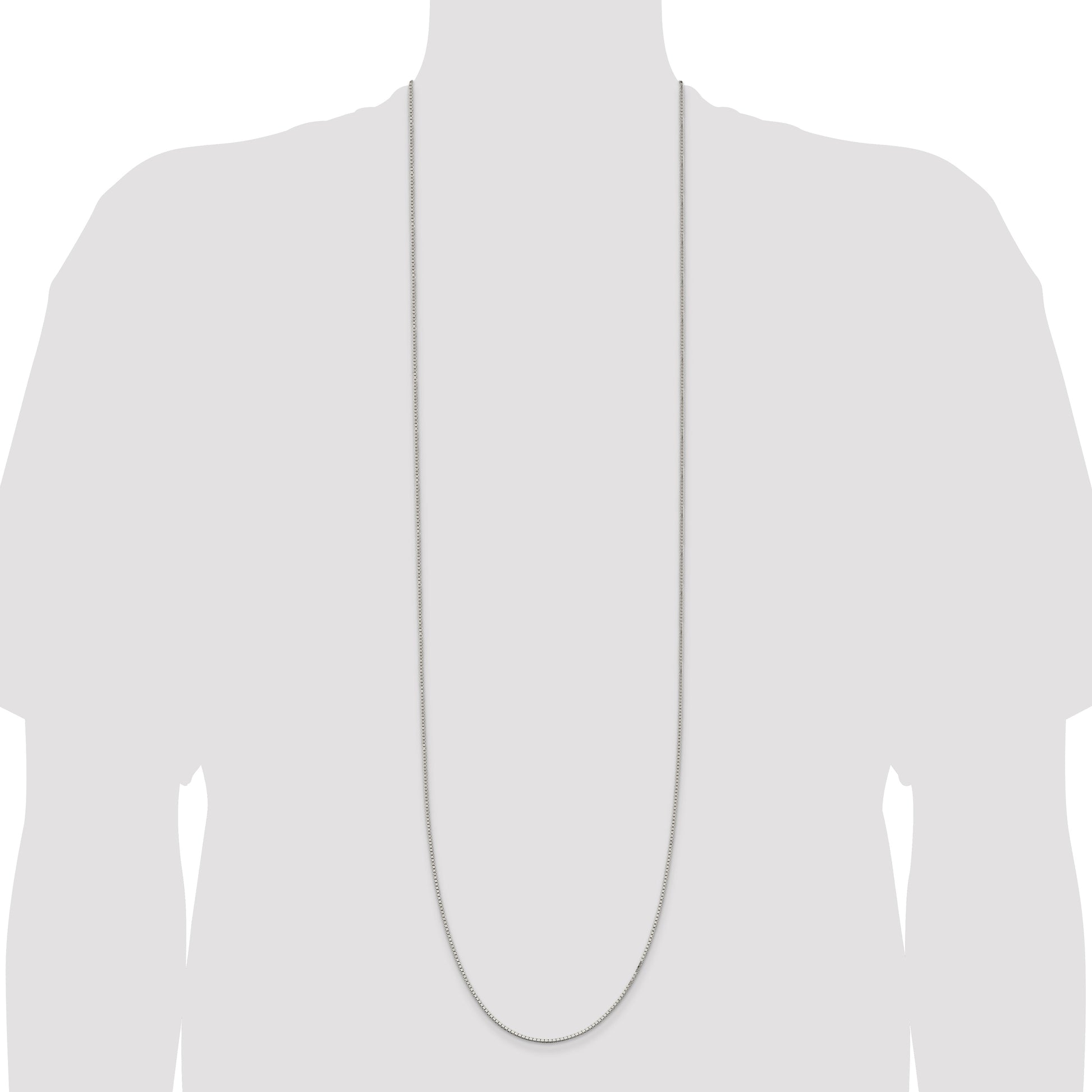 The 42 Inch Sterling Silver 1.5mm Box Chain adds a touch of understated elegance to any outfit. Crafted from 925 sterling silver, this chain boasts a polished finish that catches the light beautifully. Its solid build ensures durability and long-lasting wear. The 1.5mm wide box chain presents a classic look, perfectly suited for women's jewelry collections. With a convenient lobster clasp, it’s easy to wear and secure. The anti-tarnish coating maintains its luminous white shine. The 42 Inch Sterling Silver 1.5mm Box Chain is great alone or with a pendant for a custom style.