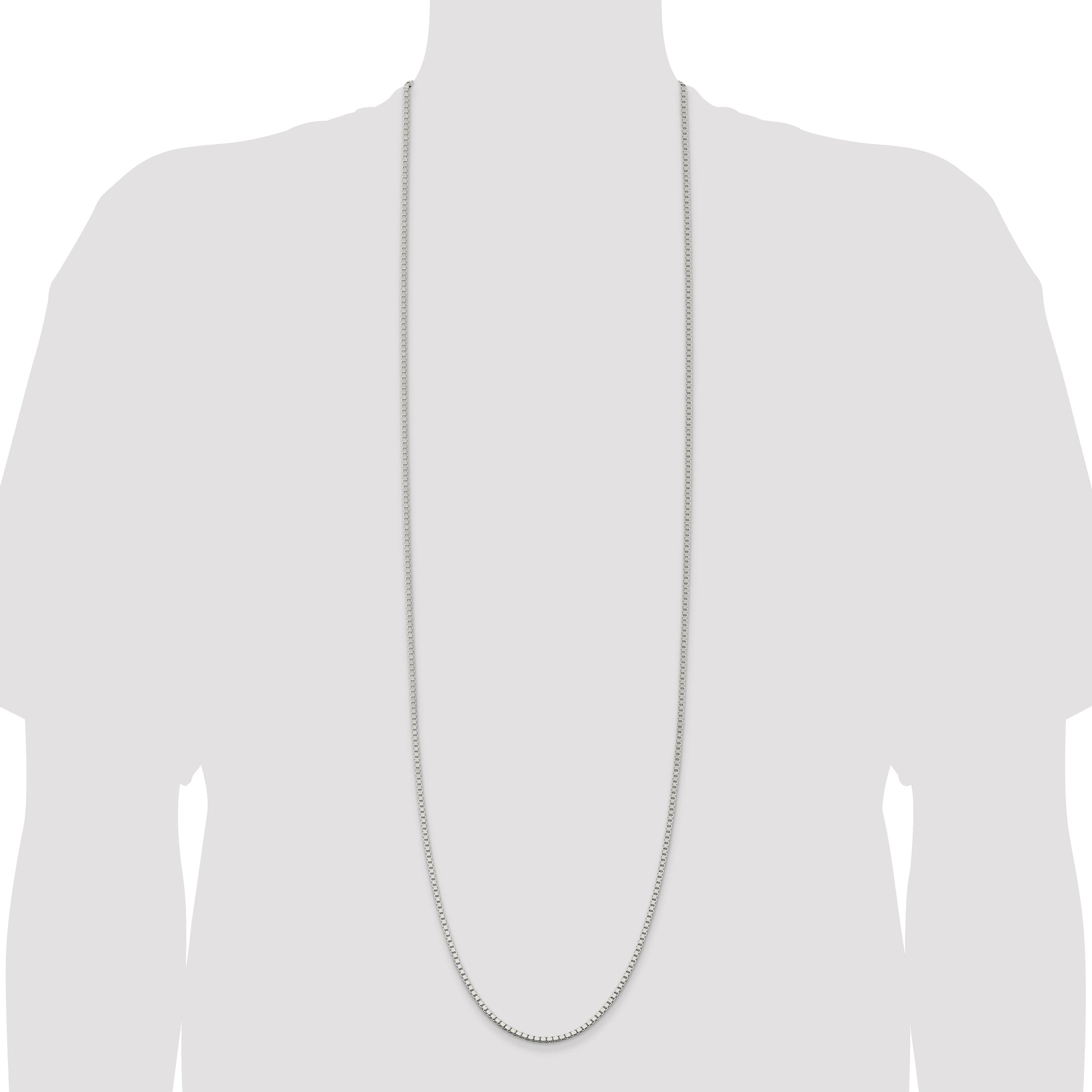 Discover timeless elegance with the 42 Inch Sterling Silver 2.5mm Box Chain. Crafted with pure 925 sterling silver, this chain showcases a polished finish that gleams with sophistication. Its solid, machine-made box links offer durability while a convenient lobster clasp ensures a secure fit. At 42 inches long, this classic piece provides versatile styling options, whether worn alone or layered. Treated with an anti-tarnish coating, it maintains its shine for years to come. A staple for any woman's jewelry collection, the 42 Inch Sterling Silver 2.5mm Box Chain never goes out of style.