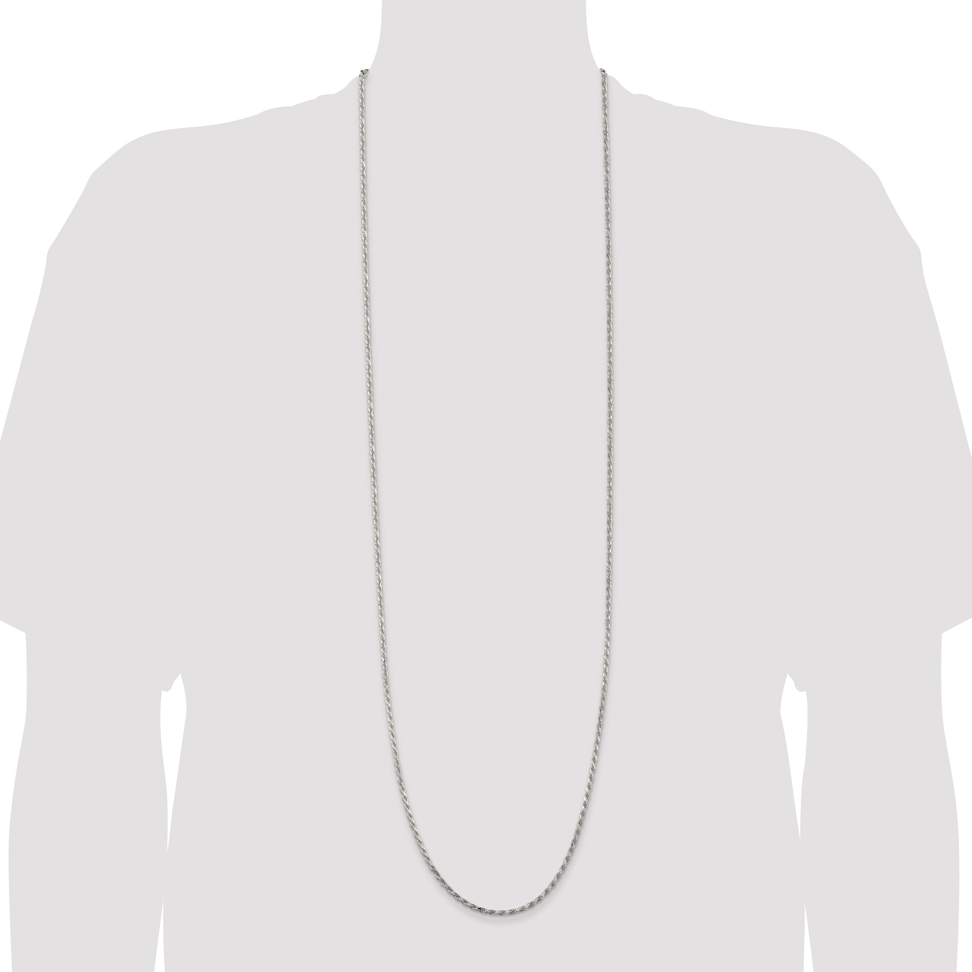 Introducing our stunning 42 Inch Sterling Silver 2.5mm Diamond-Cut Rope Chain, perfect for elevating any look. Crafted from high-quality 925 sterling silver, this necklace provides both durability and brilliance. The rope chain style adds a touch of sophistication, while the diamond-cut texture enhances its sparkle. With a comfortable 42-inch length and width of 2.5mm, it drapes elegantly around the neck. This piece features a lobster clasp for secure wear, ensuring it remains in place all day. The polished finish showcases the true beauty of sterling silver. Elevate your jewelry collection with this exquisite 42 Inch Sterling Silver 2.5mm Diamond-Cut Rope Chain.