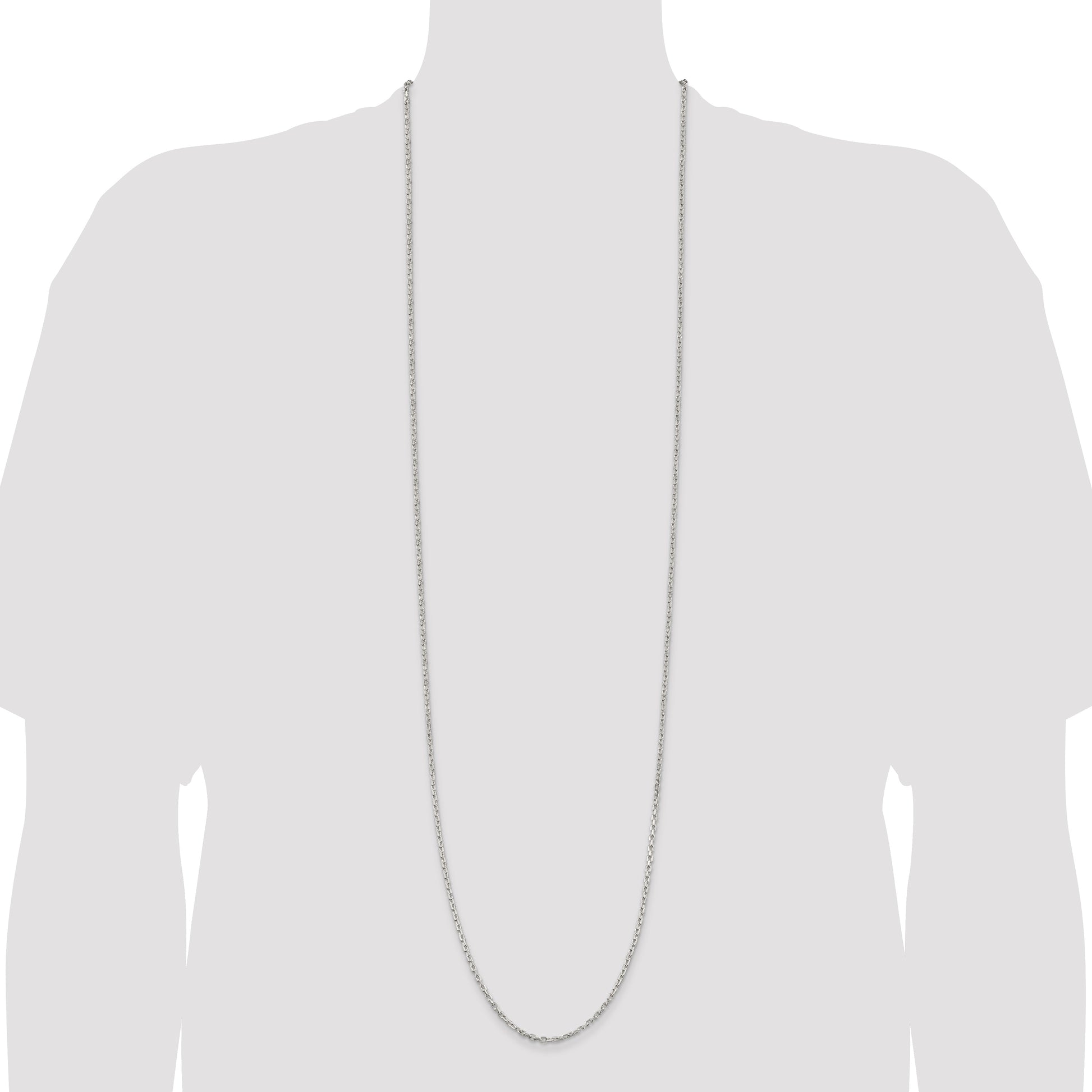 Introducing the stunning 42 Inch Sterling Silver 2.75mm Beveled Oval Cable Chain. Crafted from 925 sterling silver, this polished necklace catches the eye with its classic yet modern look. Its 2.75mm width offers an ideal balance of elegance and durability, designed specifically for women's jewelry collections. The open link structure features a beveled edge, ensuring a refined finish. Secured with a lobster clasp, this cable chain is both solid and versatile, ready to showcase your favorite pendants or stand alone as a statement piece. Discover timeless sophistication with the 42 Inch Sterling Silver 2.75mm Beveled Oval Cable Chain.
