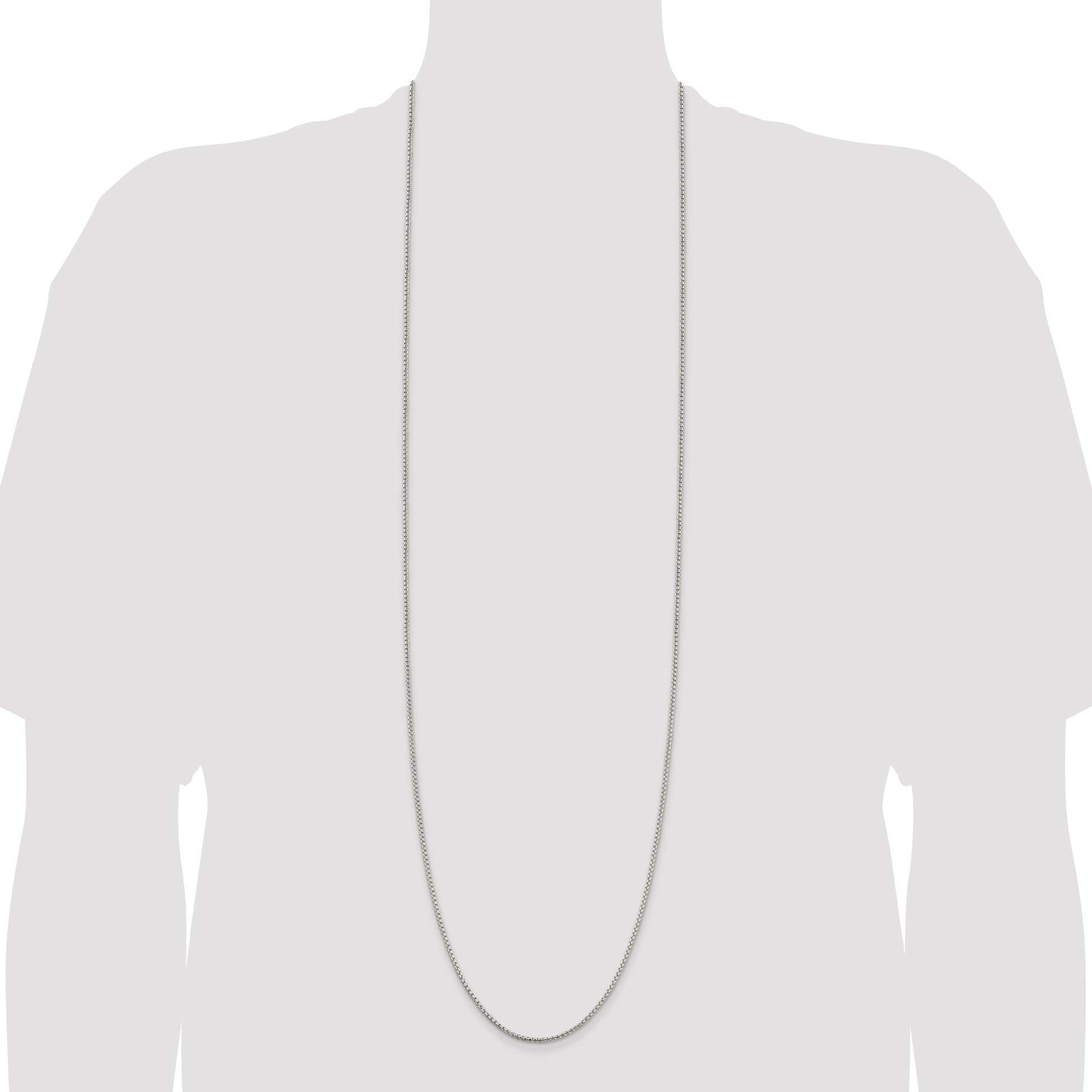 Introducing the 42 Inch Sterling Silver 2mm Round Box Chain, a timeless piece crafted for elegance and durability. Made with 925 purity sterling silver, this polished chain offers a sleek and shiny finish that catches the eye. Measuring 42 inches in length and 2mm in width, it drapes elegantly around the neck, showcasing the craftsmanship involved in its casting process. The chain features a fancy lobster clasp for secure wear. Perfect for any occasion, the 42 Inch Sterling Silver 2mm Round Box Chain is a versatile necklace that enhances any outfit.