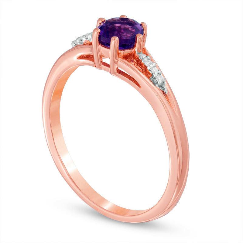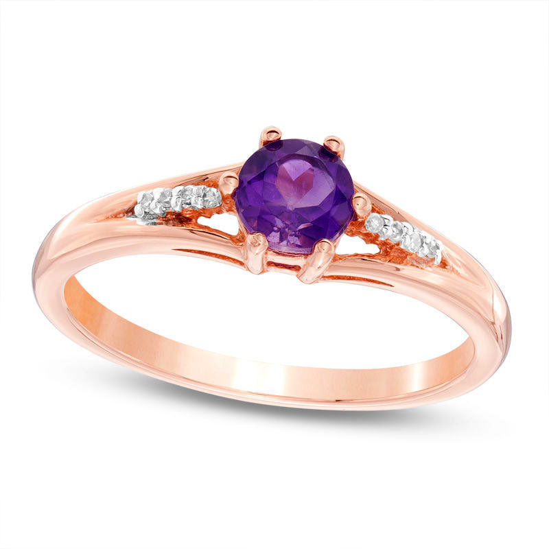 5.0mm Amethyst and Natural Diamond Accent Split Shank Ring in Solid 10K Rose Gold