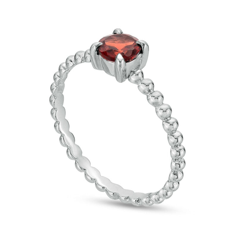 5.0mm Garnet Beaded Comfort-Fit Stackable Ring in Solid 10K White Gold - Size 7