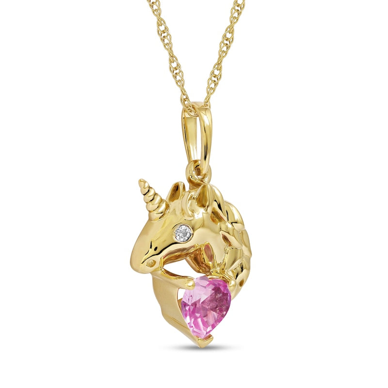 5.0mm Heart-Shaped Pink and White Lab-Created Sapphire Unicorn Pendant in Sterling Silver with 14K Gold Plate