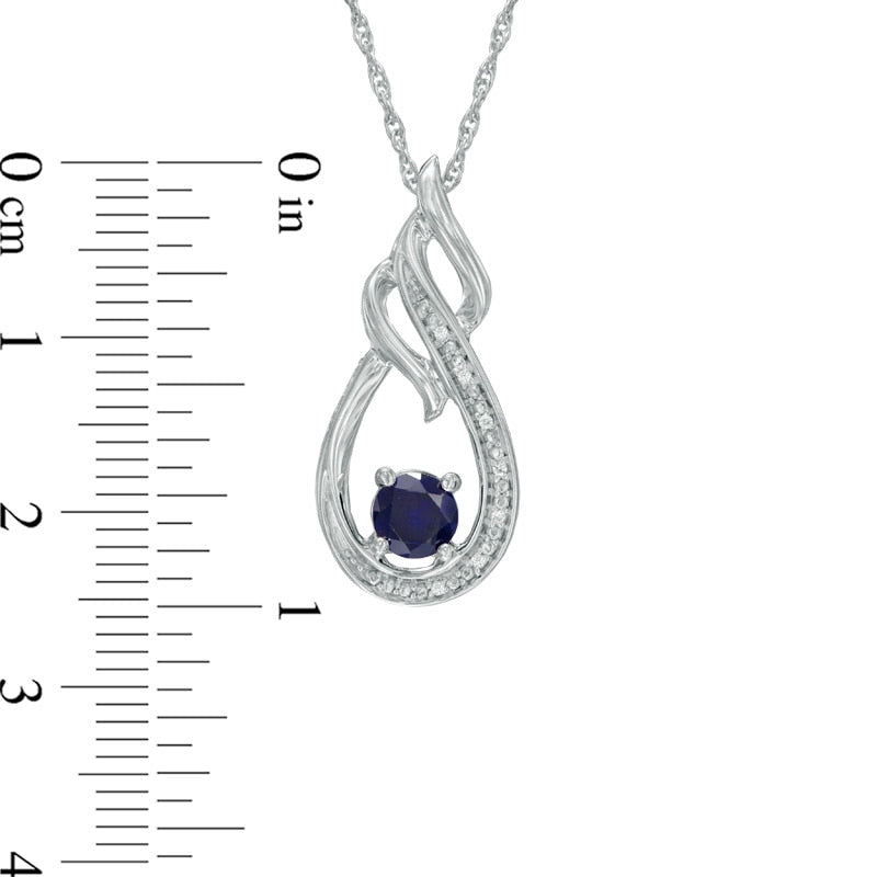 5.0mm Lab-Created Blue Sapphire and Diamond Accent Flame Pendant in Sterling Silver