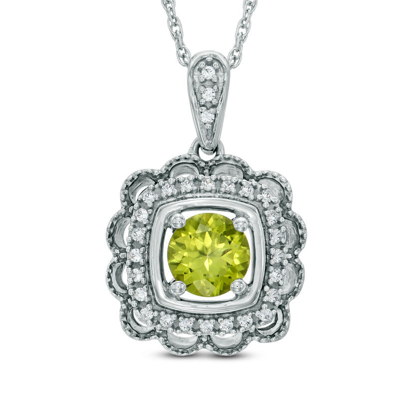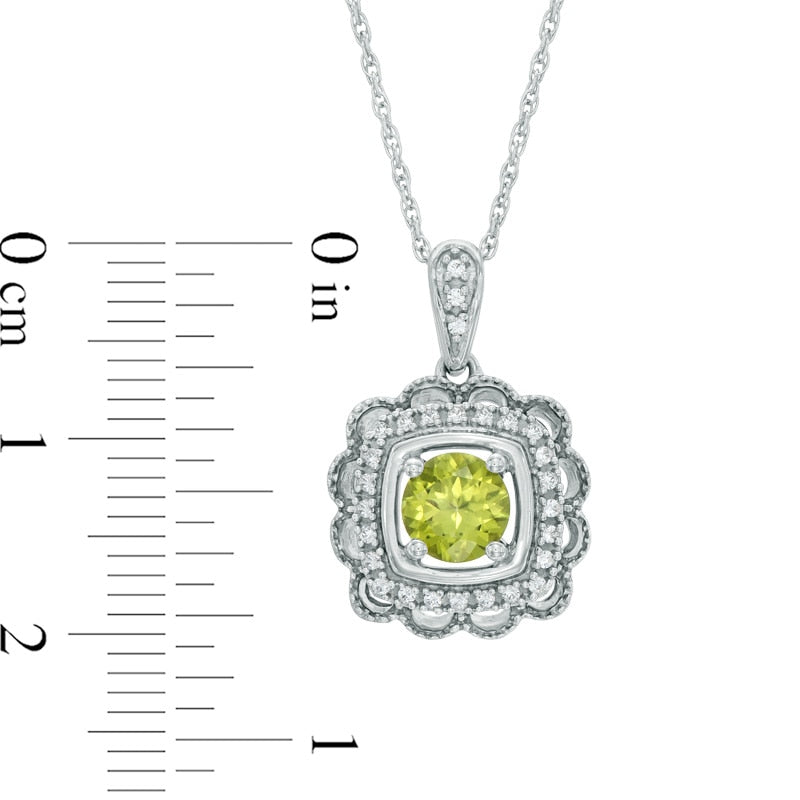 5.0mm Peridot and 0.1 CT. T.W. Natural Diamond Frame Square Pendant in Sterling Silver
