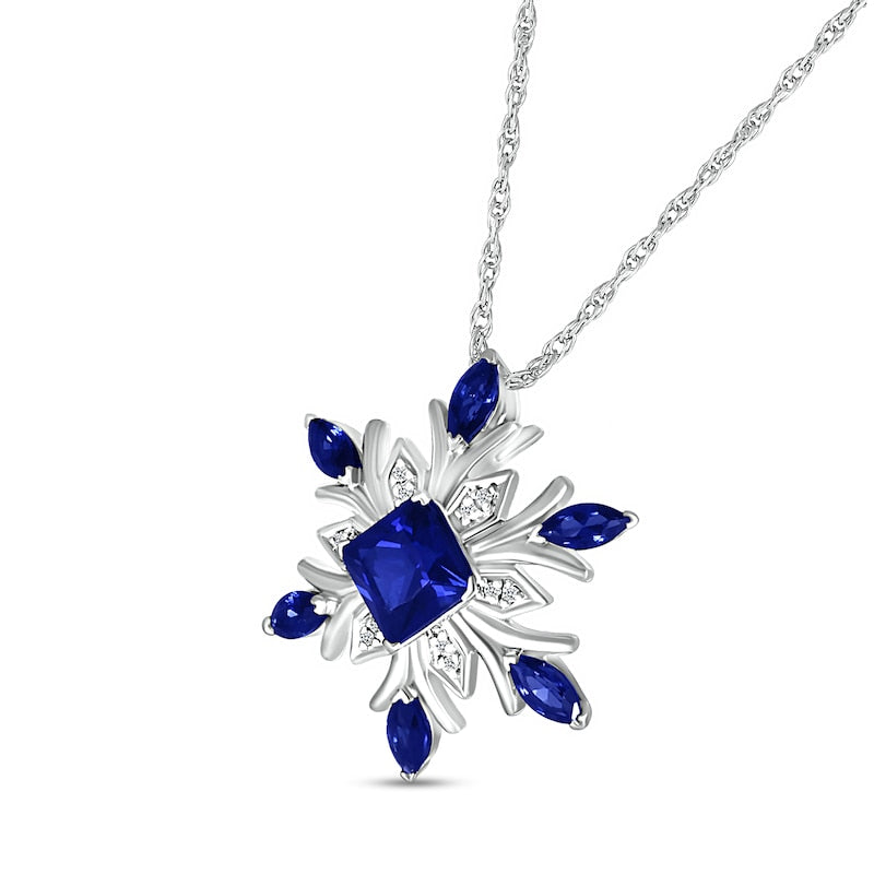 5.0mm Princess-Cut and Marquise Blue Lab-Created Sapphire with Diamond Accent Snowflake Pendant in Sterling Silver