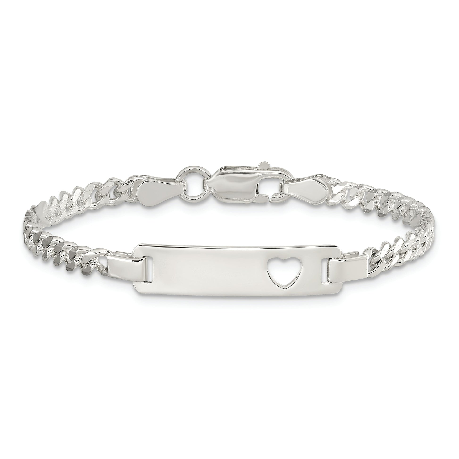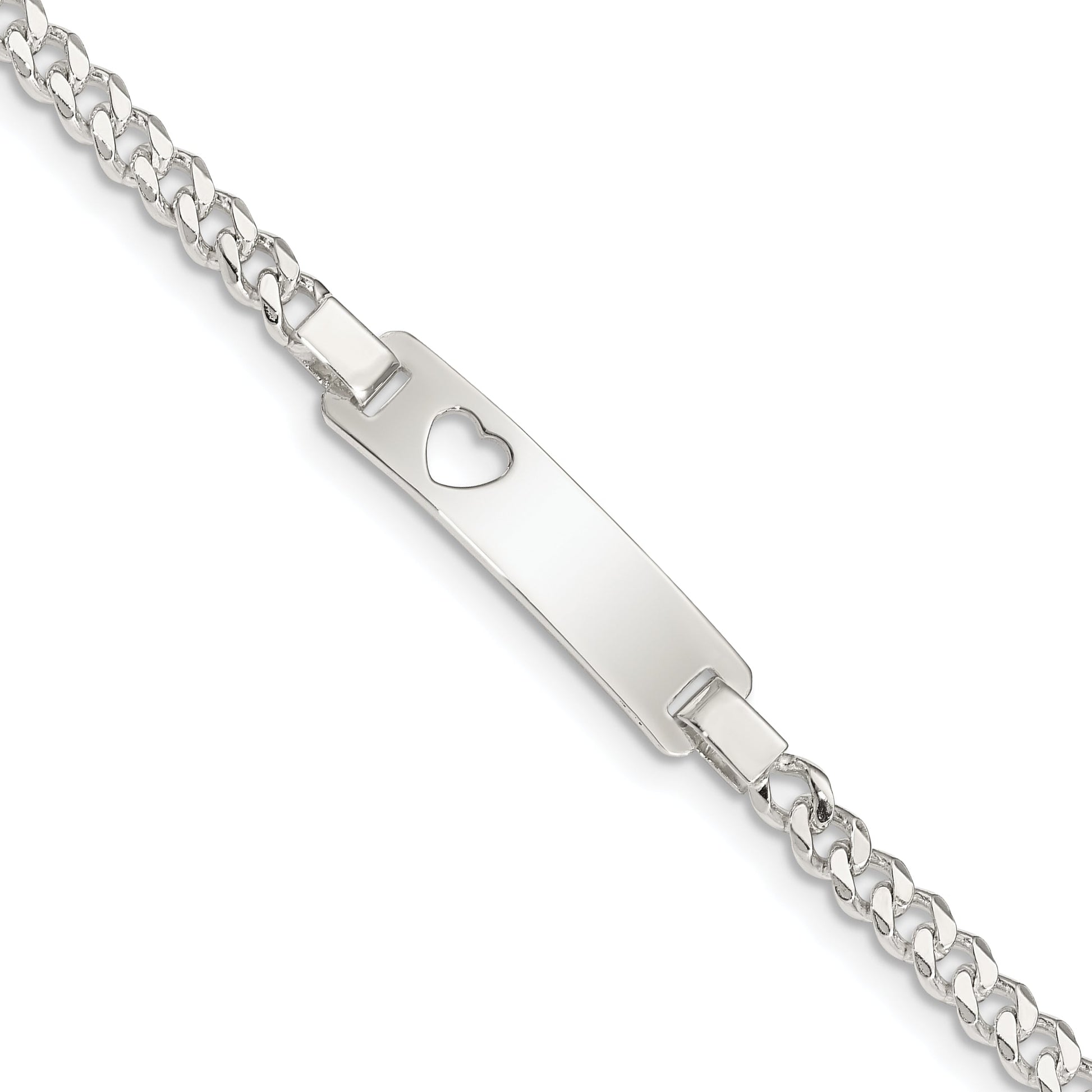 Introduce a timeless piece with the 5.5 Inch Sterling Silver Baby ID Bracelet with a Cut-Out Heart. This bracelet shines with genuine 925 sterling silver, polished to perfection. Its sturdy curb chain measures a charming 5.5 inches, making it ideal for little wrists. A unique cut-out heart design adds a touch of sweetness, while the lobster clasp ensures a secure fit. Every detail speaks of quality, with cast manufacturing giving it durability and a smooth finish. Personalization options like engraving make it a memorable gift. Celebrate precious moments with this enchanting 5.5 Inch Sterling Silver Baby ID Bracelet.