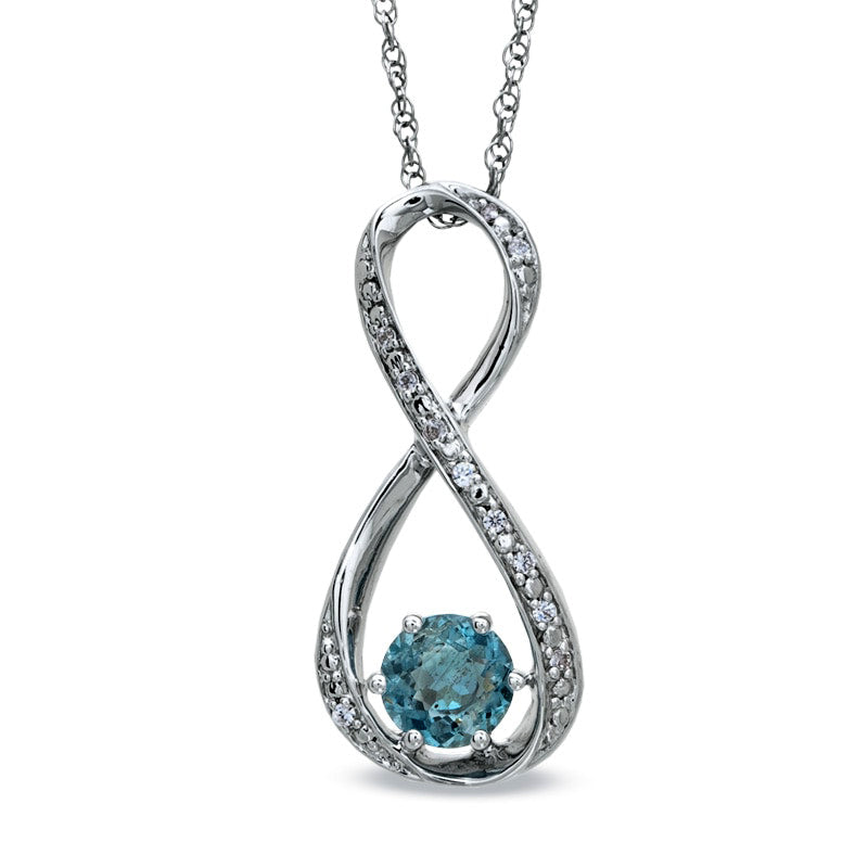 5.5mm Aquamarine and Natural Diamond Accent Infinity Pendant in Sterling Silver