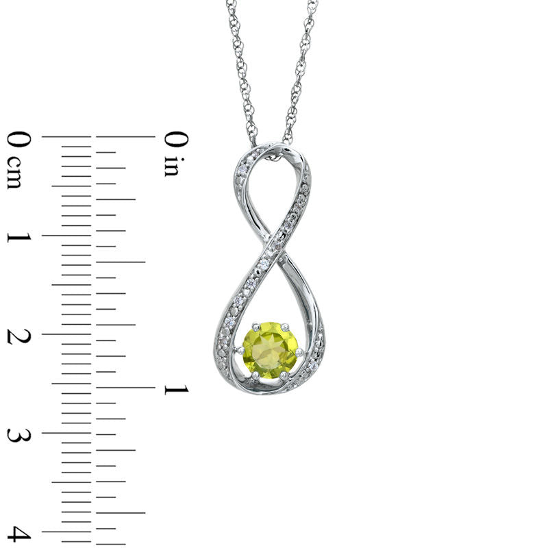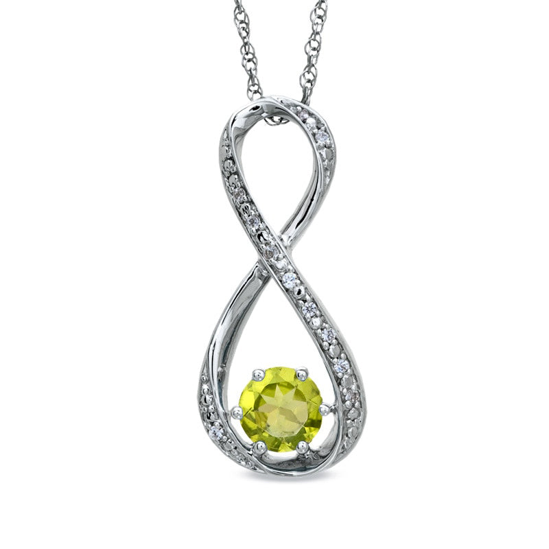 5.5mm Peridot and Natural Diamond Accent Infinity Pendant in Sterling Silver