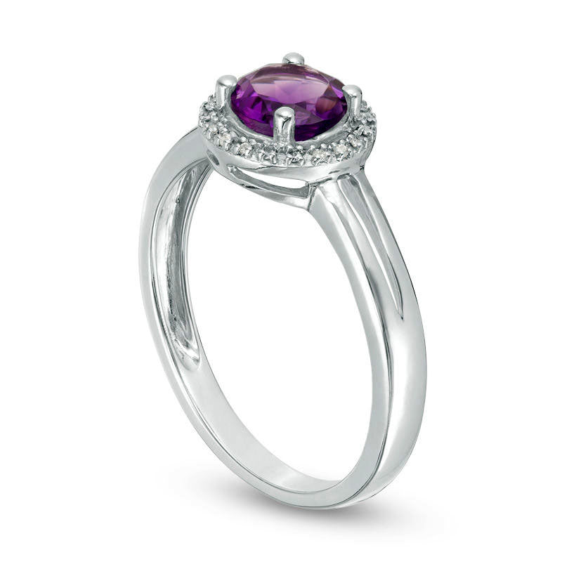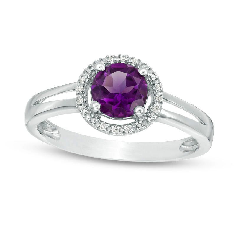 Experience elegance and simplicity with this magnificent gemstone ring that will grant every February birthday girl's wish. Made with sterling silver, this ring exhibits a stunning 5.7mm amethyst stone that captures the eye, complemented by a splendid frame encrusted with diamond accents. Its split-shank design ensures this piece will be cherished for years to come, making it a fabulous keepsake. Each ring is custom made to fit your or your special someone's ring size. Please note that sterling silver rings cannot be resized after purchase. Grab this timeless piece, and feel the beauty of this refined design.