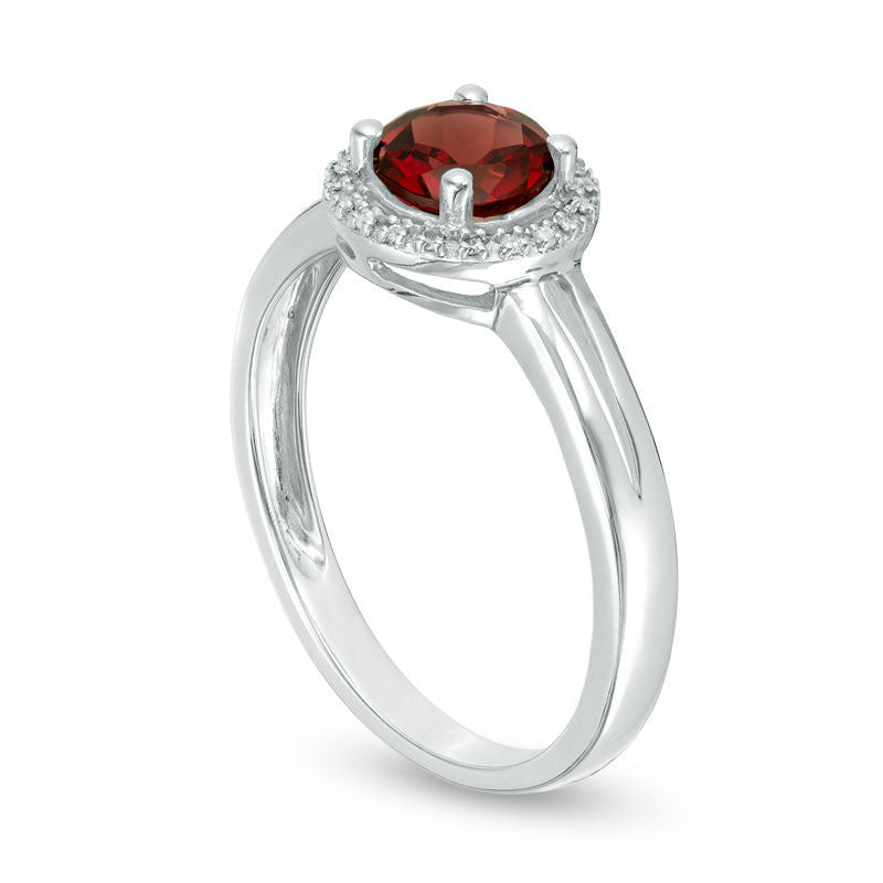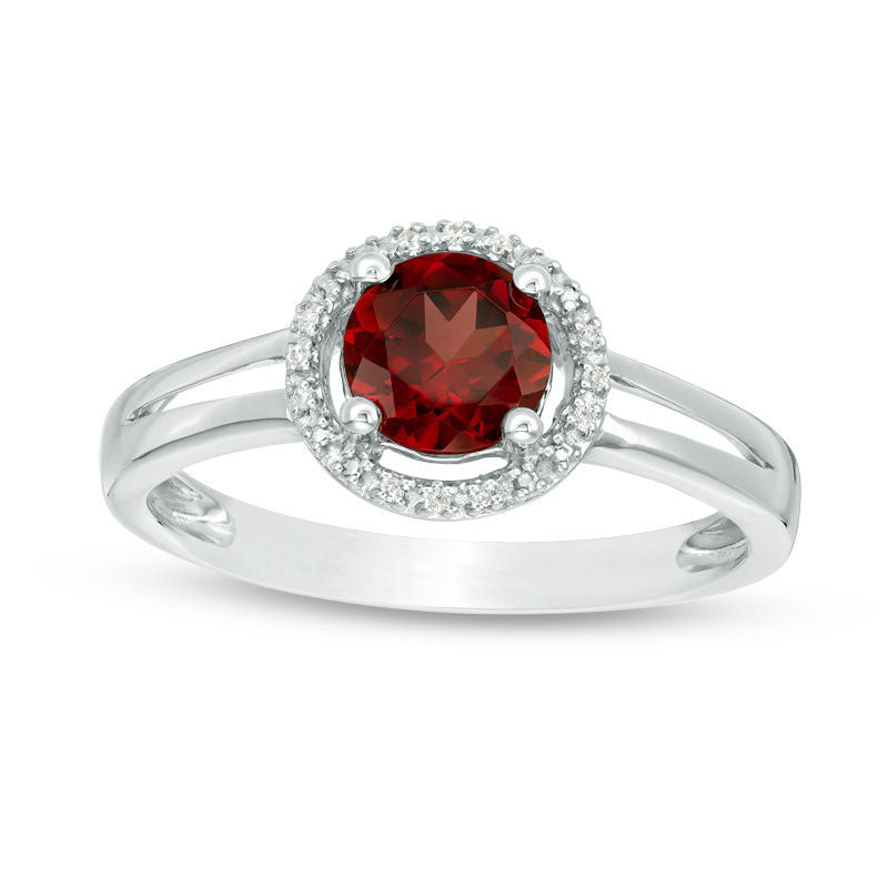 5.7mm Garnet and Natural Diamond Accent Frame Split Shank Ring in Sterling Silver