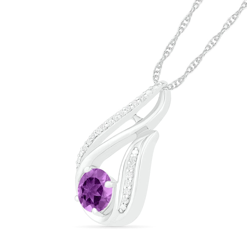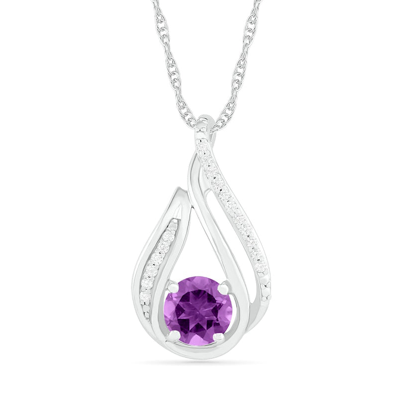 6.0mm Amethyst and 0.07 CT. T.W. Natural Diamond Beaded Open Flame Pendant in Sterling Silver