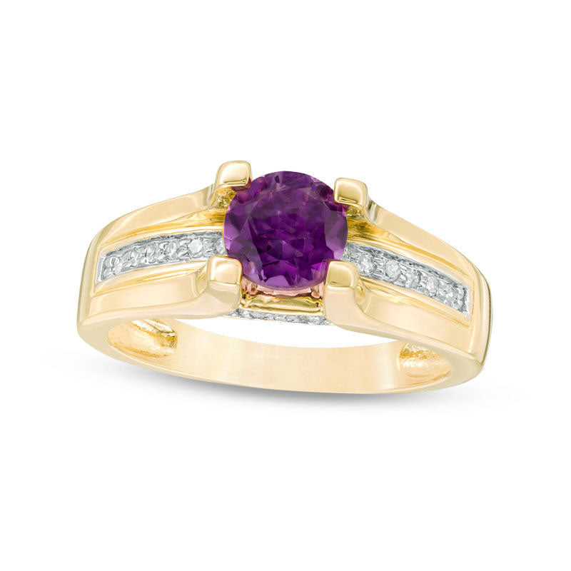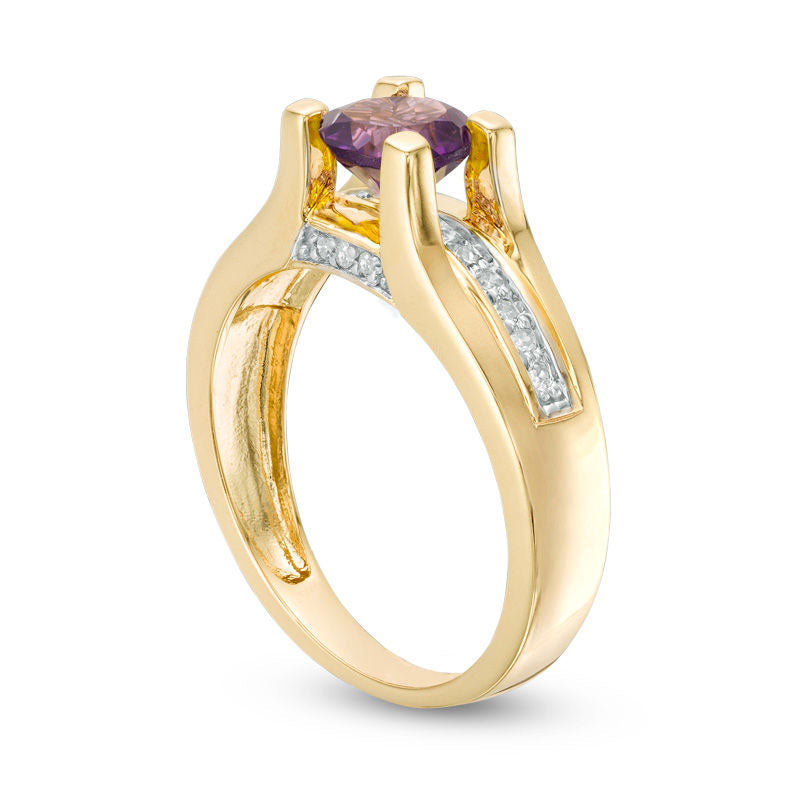 6.0mm Amethyst and 0.10 CT. T.W. Natural Diamond Cathedral Shank Ring in Solid 10K Yellow Gold