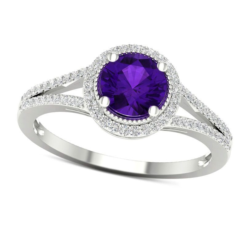 6.0mm Amethyst and 0.17 CT. T.W. Natural Diamond Double Frame Antique Vintage-style Split Shank Ring in Solid 10K White Gold