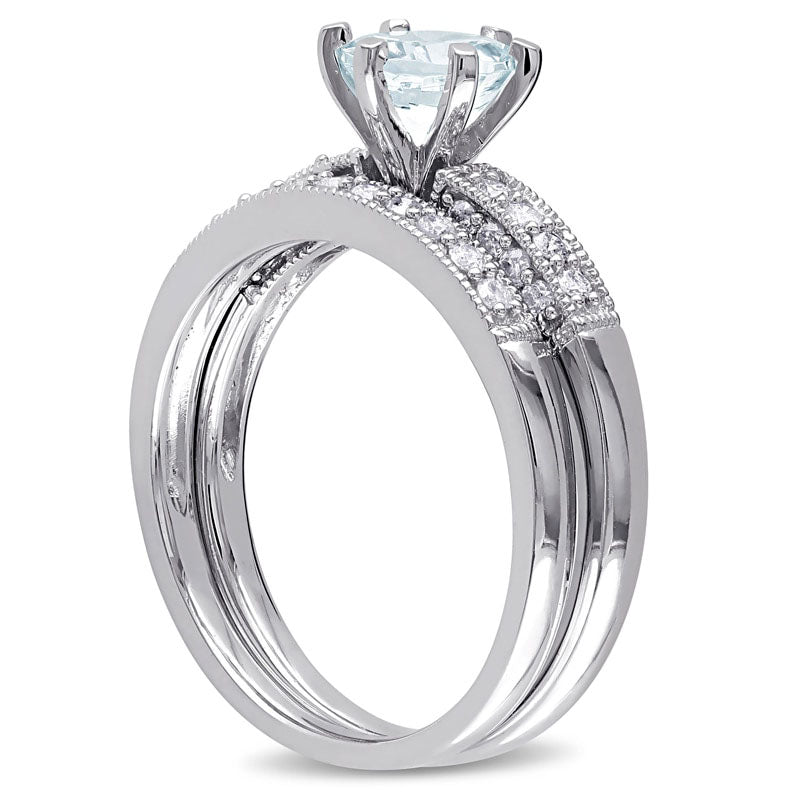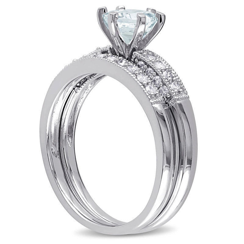 6.0mm Aquamarine and 0.33 CT. T.W. Natural Diamond Bridal Engagement Ring Set in Solid 10K White Gold