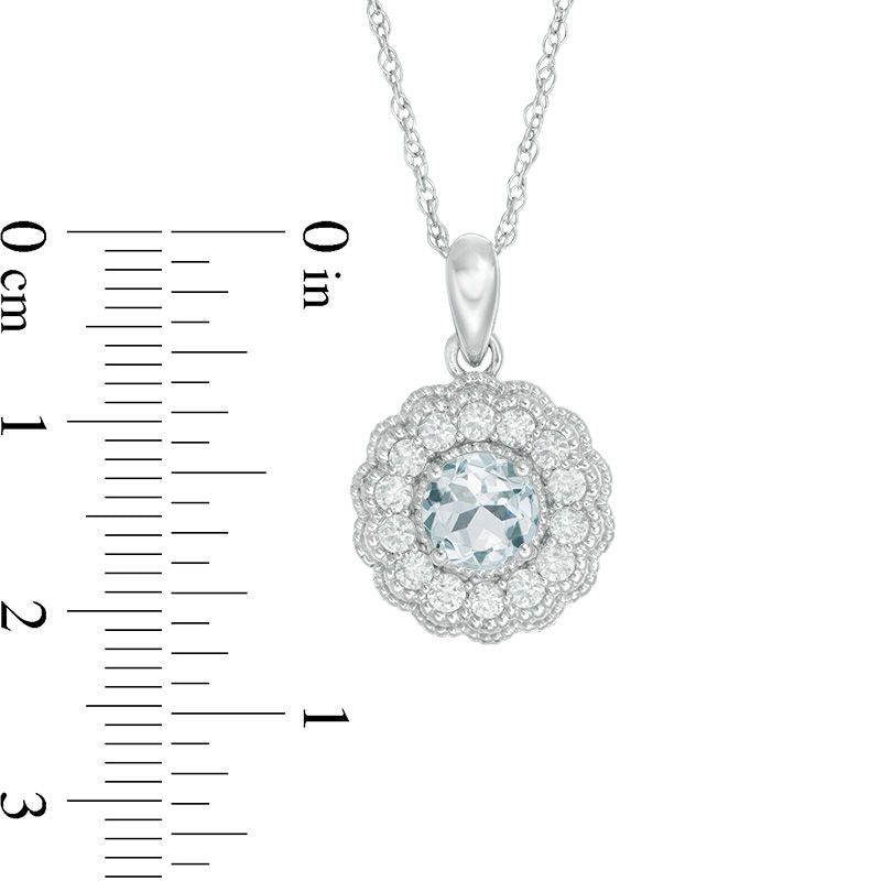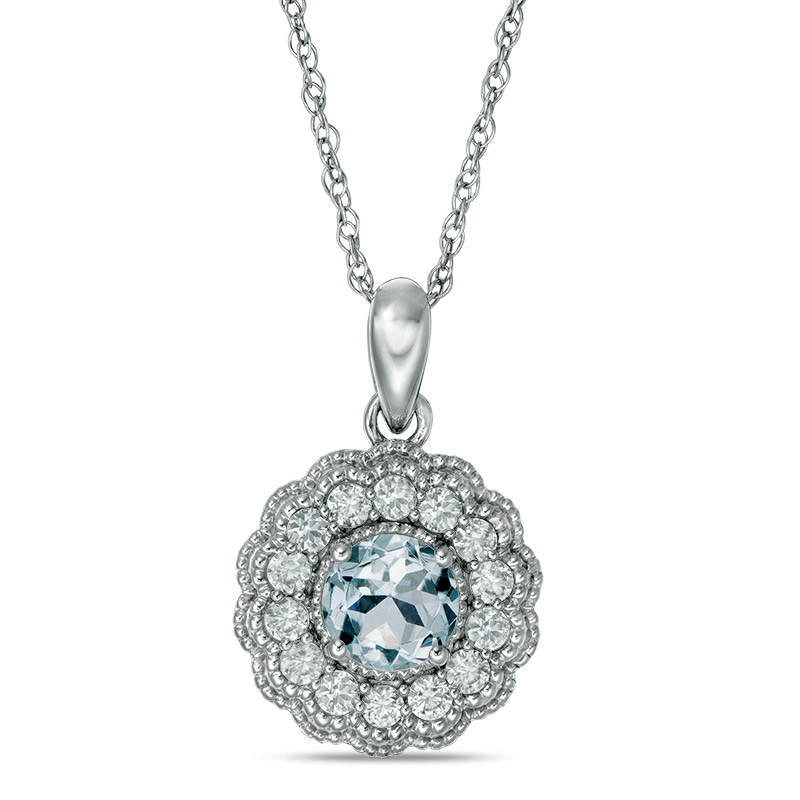 6.0mm Aquamarine and Lab-Created White Sapphire Flower Pendant in Sterling Silver