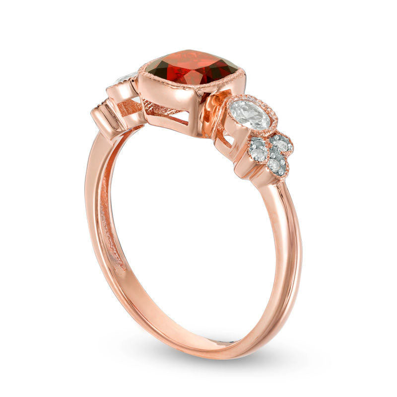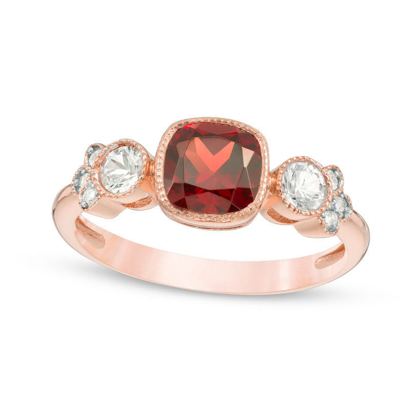 6.0mm Cushion-Cut Garnet, White Sapphire and Natural Diamond Accent Antique Vintage-Style Ring in Solid 10K Rose Gold