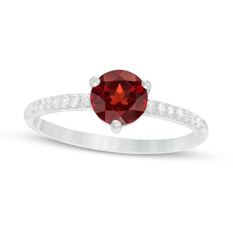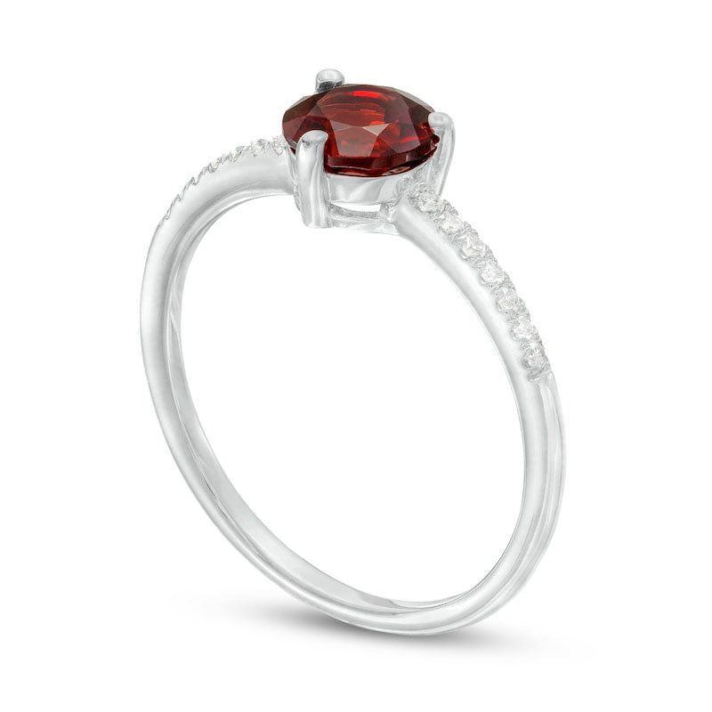6.0mm Garnet and 0.10 CT. T.W. Natural Diamond Ring in Solid 10K White Gold