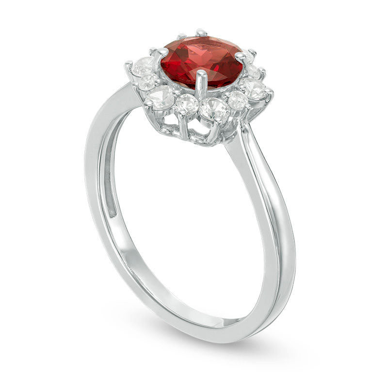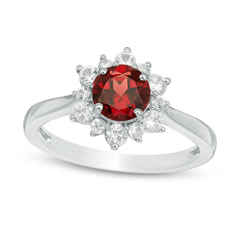 6.0mm Garnet and Lab-Created White Sapphire Sunburst Ring in Sterling Silver