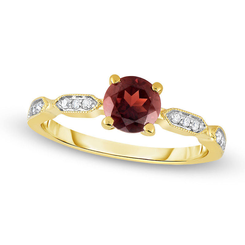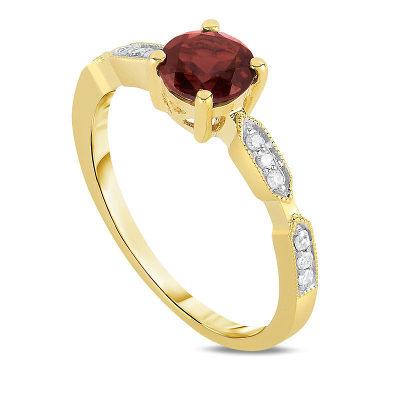 6.0mm Garnet and Natural Diamond Accent Ring in Solid 10K Yellow Gold