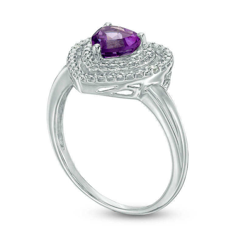 6.0mm Heart-Shaped Amethyst and Natural Diamond Accent Double Frame Ring in Sterling Silver