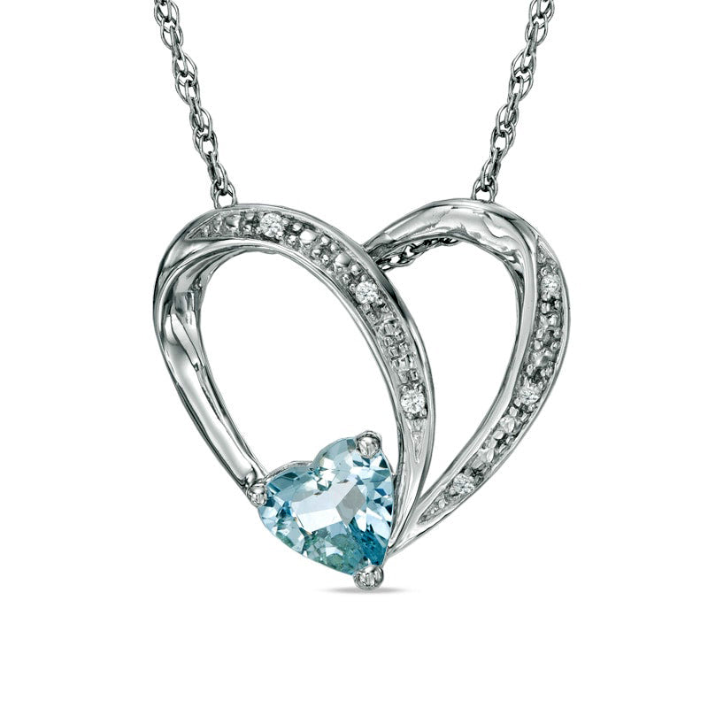 6.0mm Heart-Shaped Aquamarine and Lab-Created White Sapphire Heart Pendant in Sterling Silver